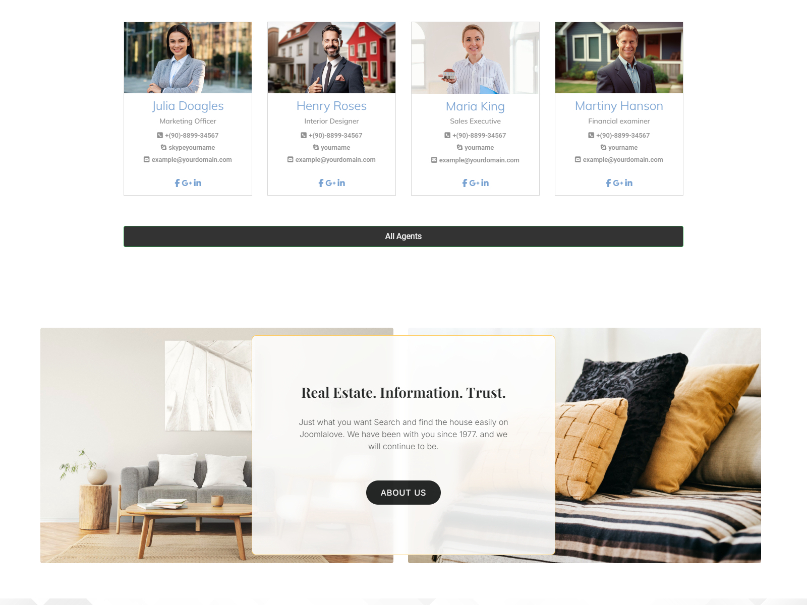 - Add agent profiles to your property site and present your listed agents in an innovative way. Agent profiles include basic information like name, designation, image, description, social links, maps etc.