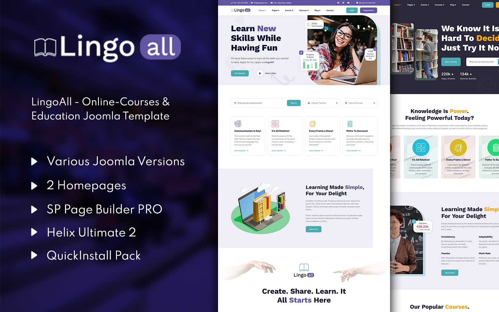 LingoAll is a Joomla template perfectly created to adapt to all of your sites that revolve around education or online-courses, helping you reach your objectives and achieve success.