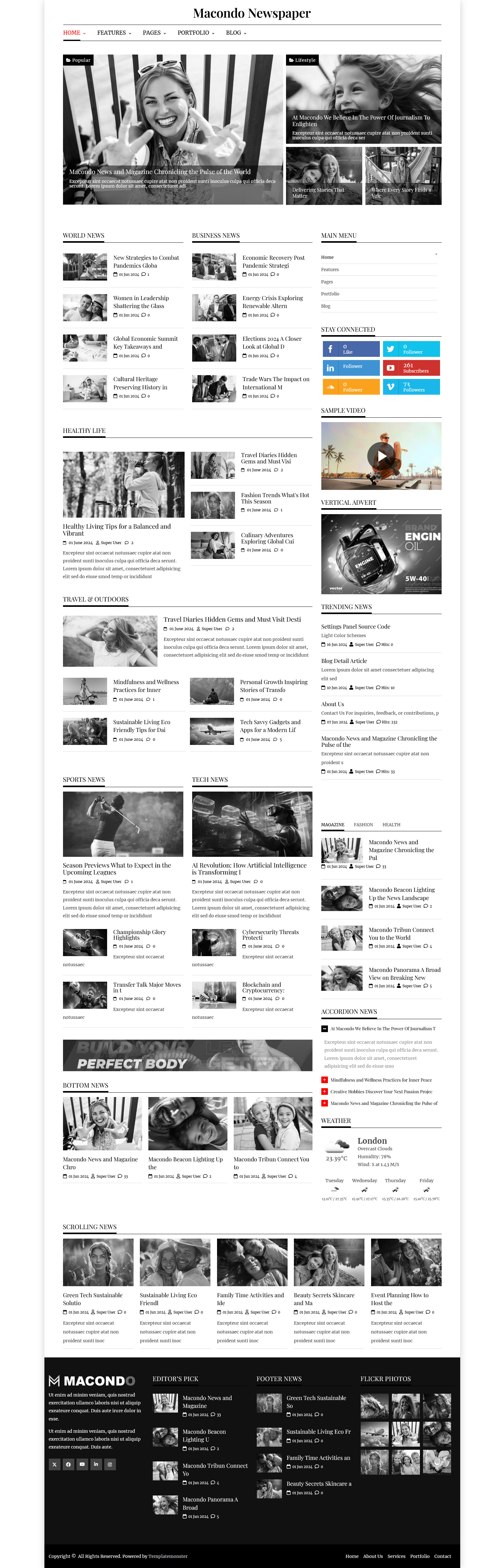Discover the ultimate solution for your online magazine and news portal with the Macondo Joomla Template. Built on the robust T4 Framework and powered by Bootstrap 5, Macondo combines modern design with cutting-edge technology to deliver a seamless and responsive user experience. Whether you're reporting breaking news or sharing lifestyle stories, Macondo offers a versatile and customizable platform to showcase your content with style and efficiency. Enjoy a rich array of features, from dynamic layouts and advanced typography to integrated social media and SEO optimization, all designed to help you engage your audience and grow your online presence.