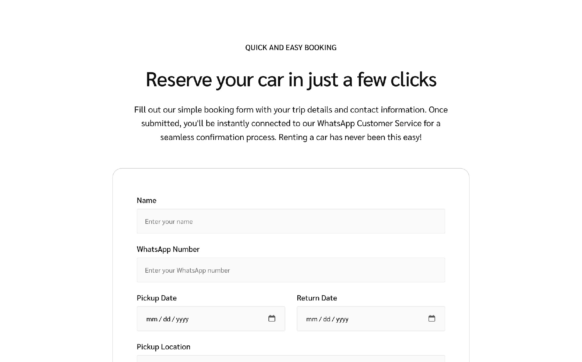 - Integrated Contact Form : Enable seamless communication with stylish, customizable contact forms that make it easy for customers to inquire or book vehicles.
