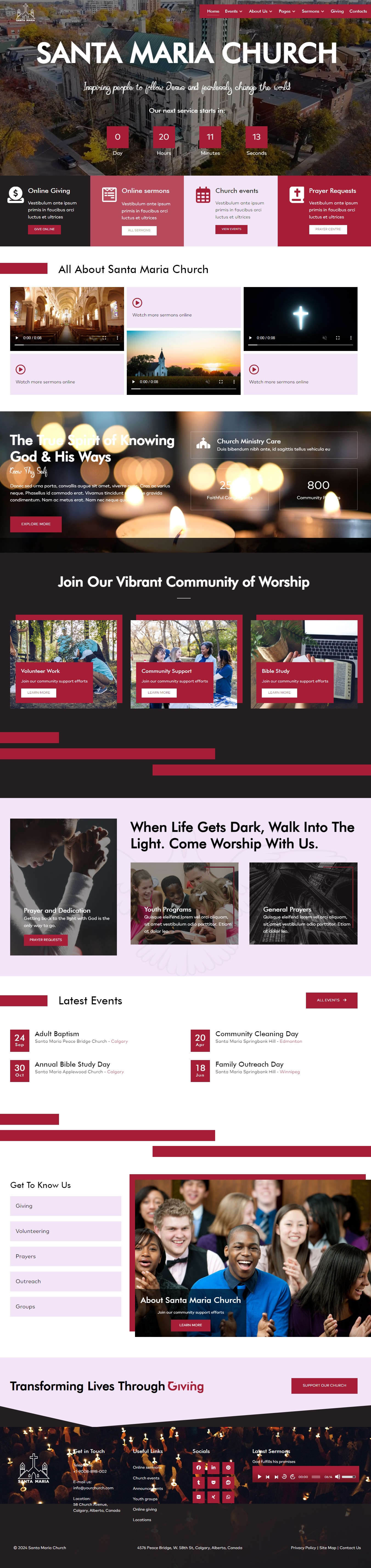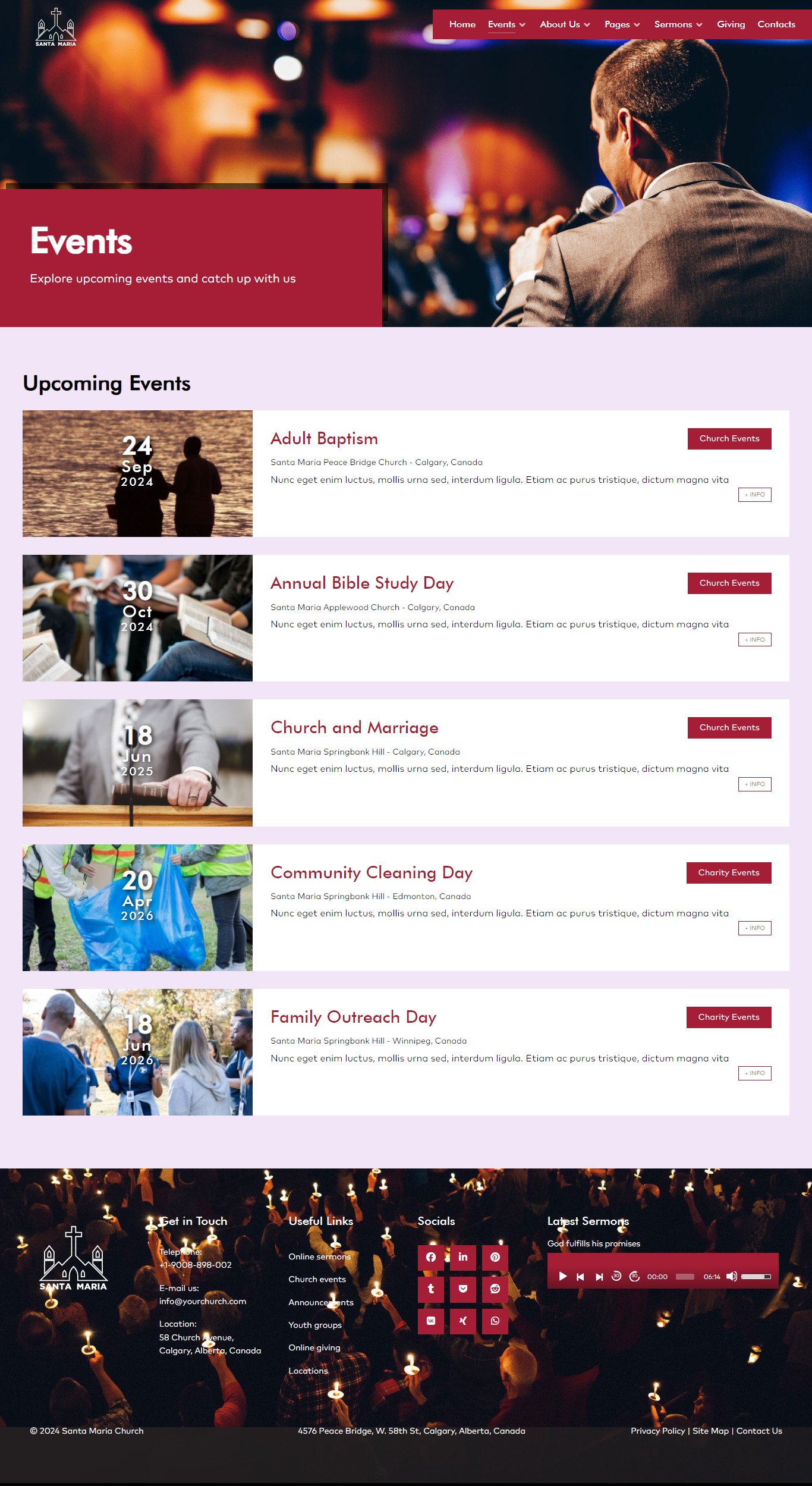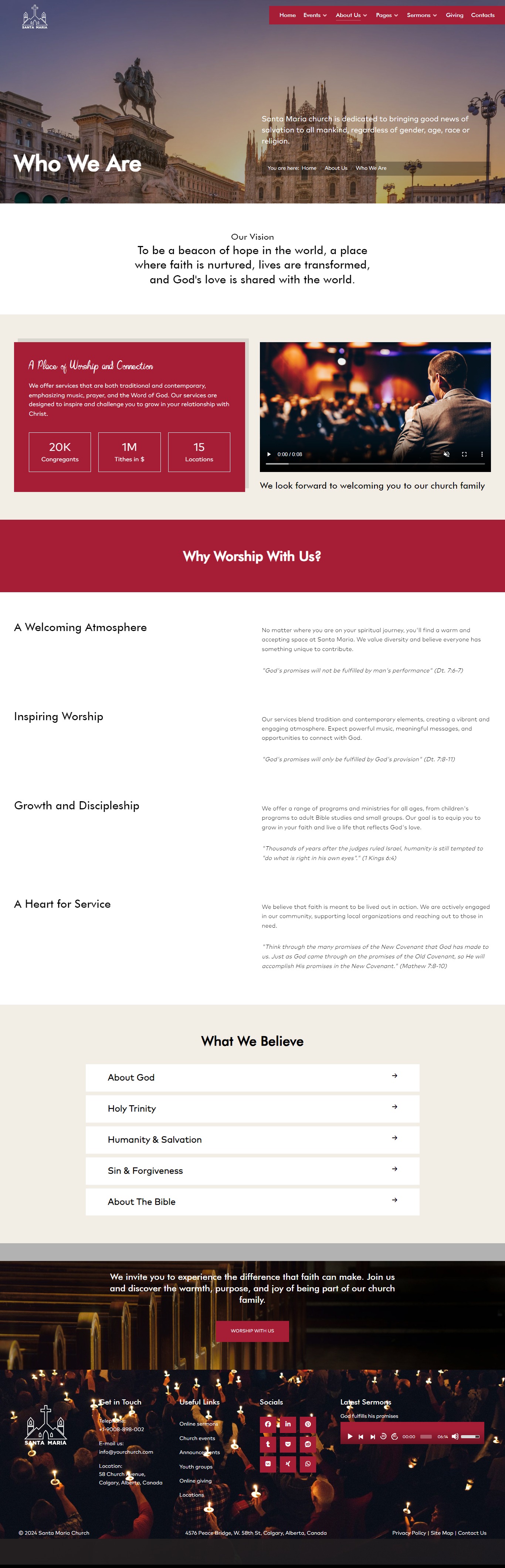 Specific pages have been purposefully created targeting various functions in the church. These include sermon listing pages, pages featuring sermon speakers, sermon audio and video players, including and option of either streaming from Youtube or hosting your own sermon video.