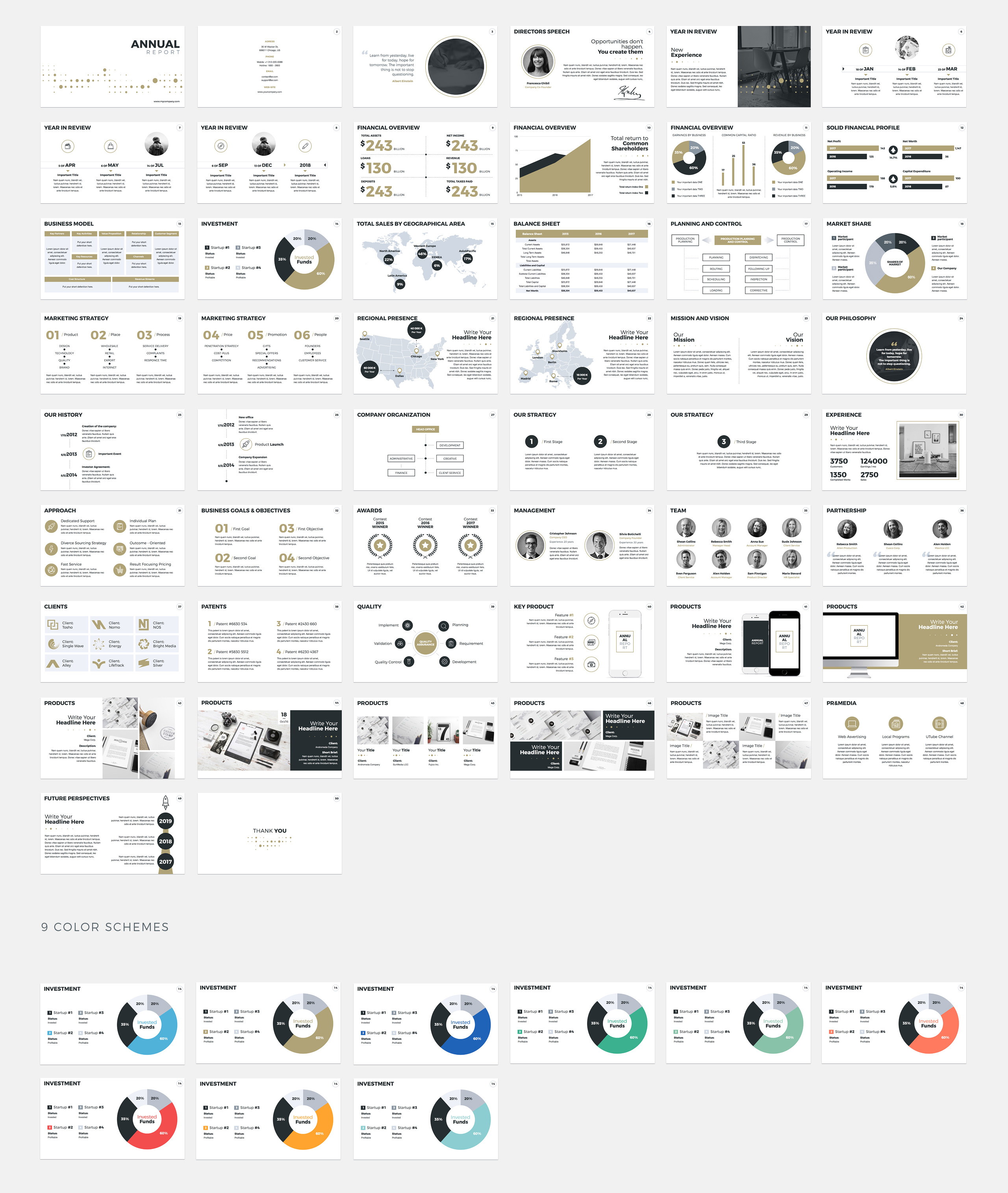 Try this helpful and professional Annual Report template which based on real successful samples. It will help you to describe your company's activities throughout the year. Big typefaces and contrast colors will allow your clients to focus on your data and final analysis. Also you can use this template as company profile, business proposal, etc.
