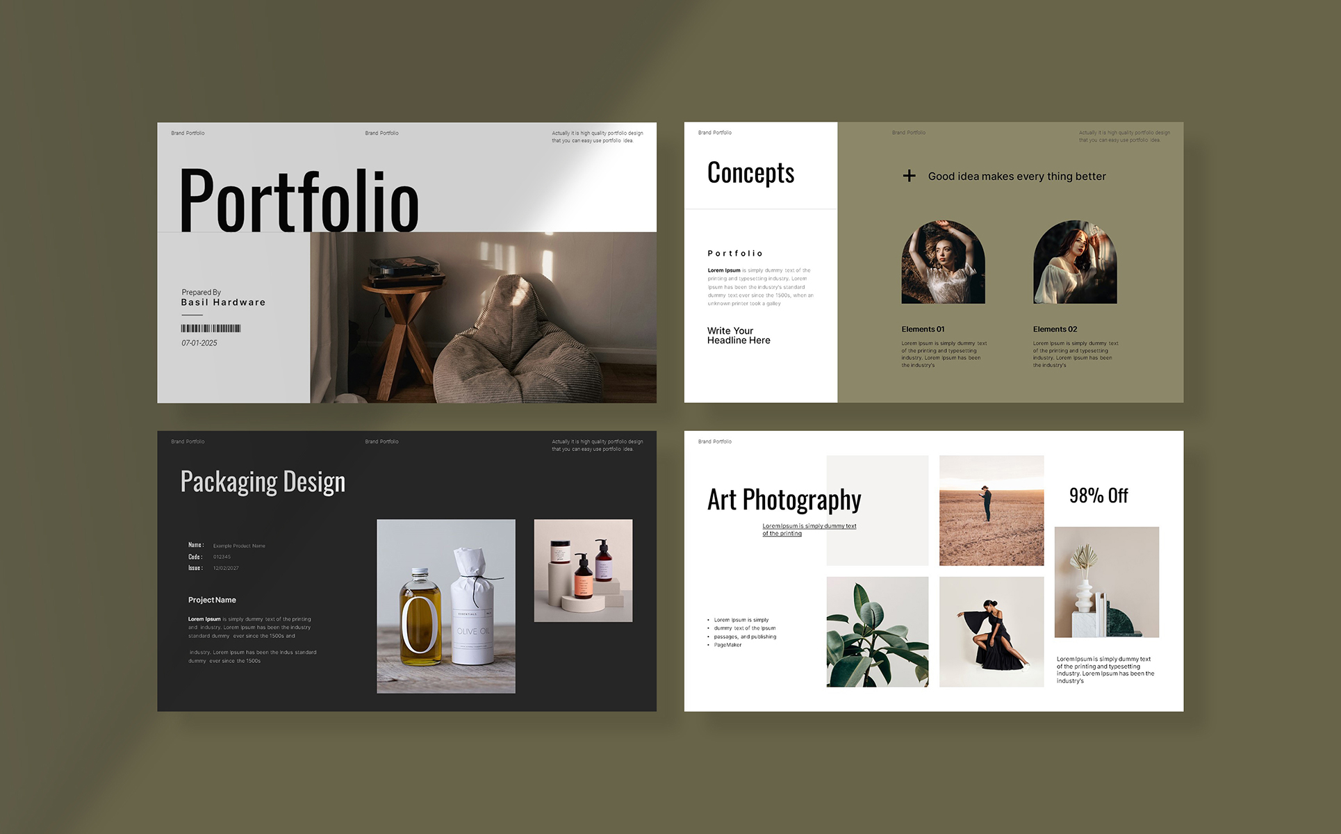 Portfolio Keynote Presentation Template is a classic timeless clean design, inspired by one of my favorite brands: Aesop.