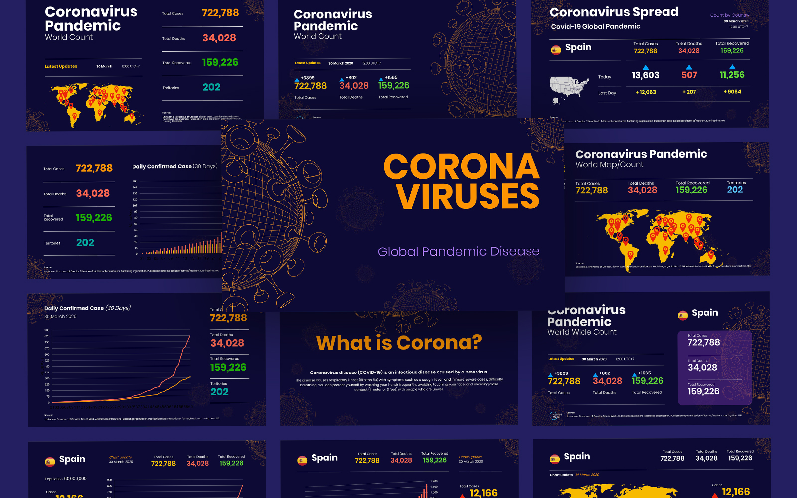 Covid-19 Corona Virus Live Count Keynote Template Flat, Clean, Minimalist, Elegant and Flexible Presentation Template.