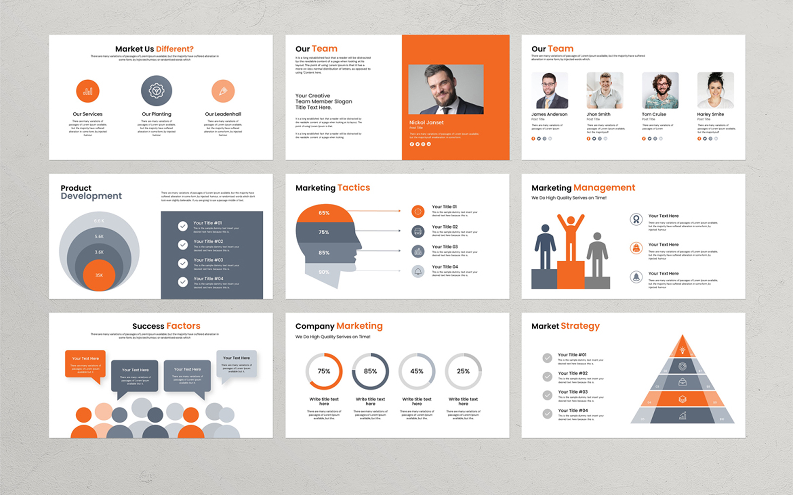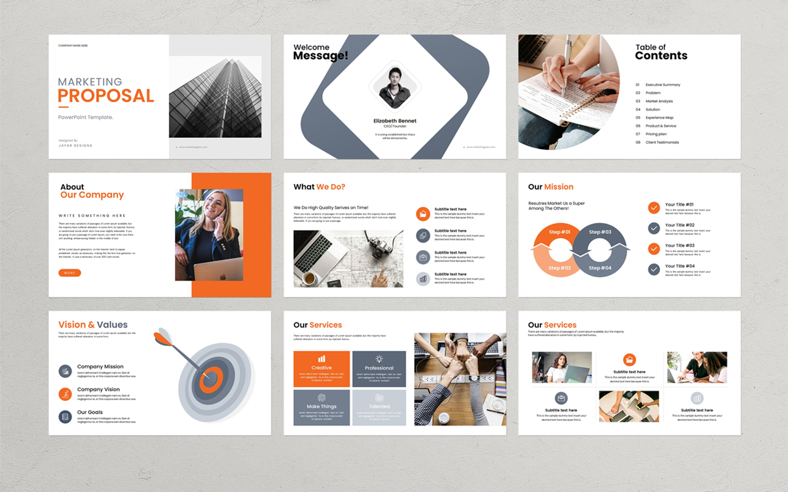 Present your works in a profaessional and clean way with marketing proposal presentation template. This is a simple, contemporary but powerful design that includes creative photo layouts, infographics, tables, vector icons, diagrams and tons of great features to show your work and your company profile on another level.