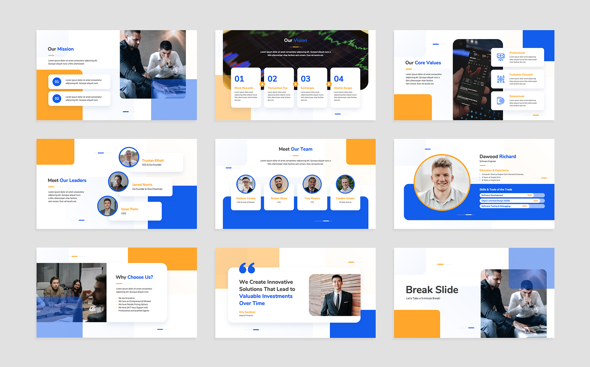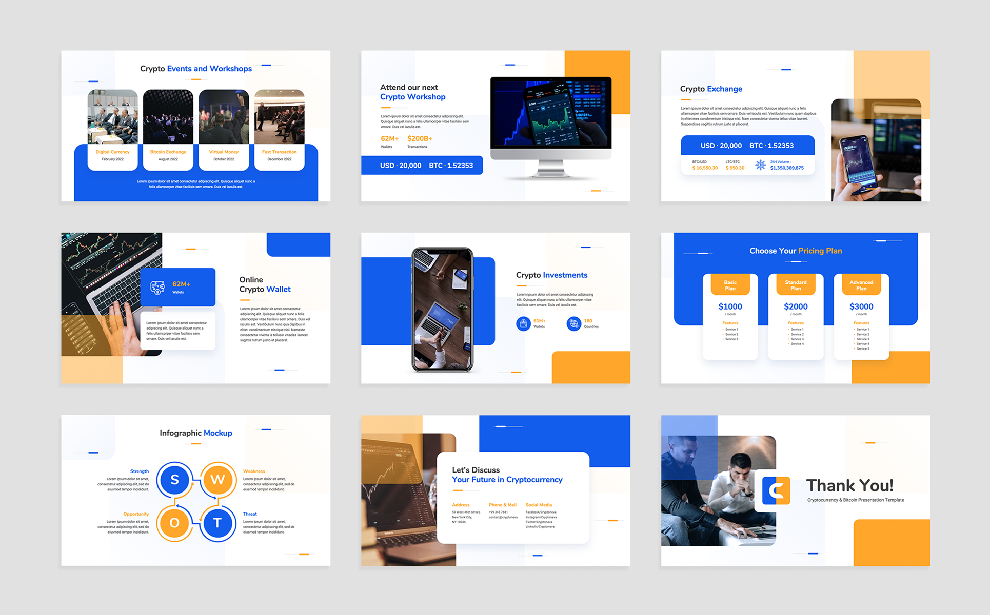 When creating the Cryptoneva Presentation Template, our primary focus was on companies and individuals working in the crypto businesses, crypto exchanges, crypto workshops, and crypto investment companies. Whether you’re making a bid to an important new client or a business portfolio, this Apple Keynote template will allow you to turn your information and data into a presentation quickly and efficiently.