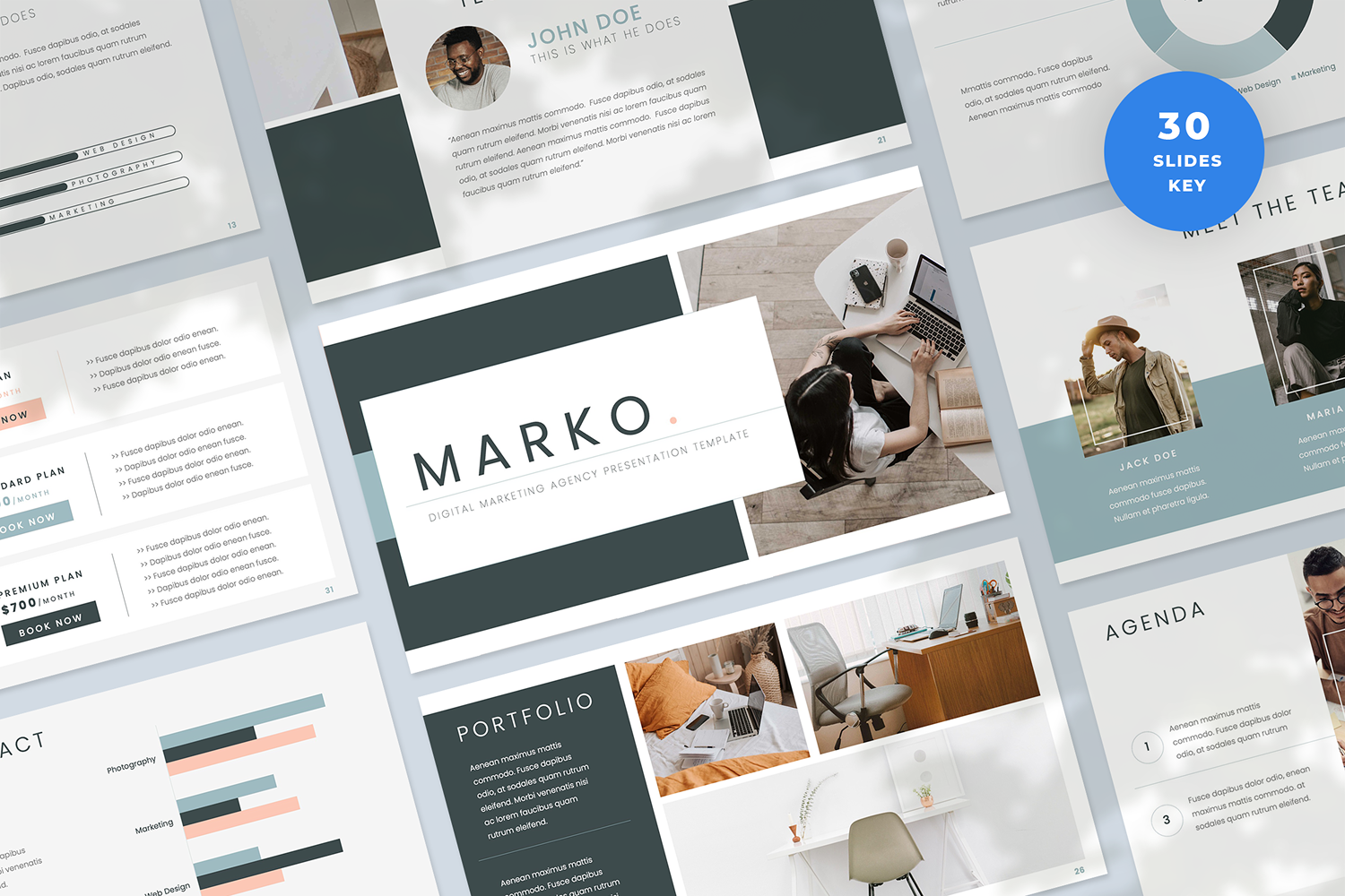 Marko Presentation Template for Microsoft Apple Keynote is a modern and elegant presentation that will allow you to showcase your services, products, results and even testimonials as a digital marketing agency. It contains 34 beautifully designed slides that can be easily edited and adjusted to suit all of your professional and business needs.