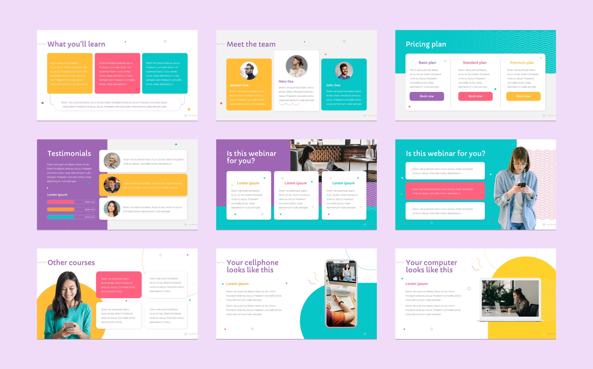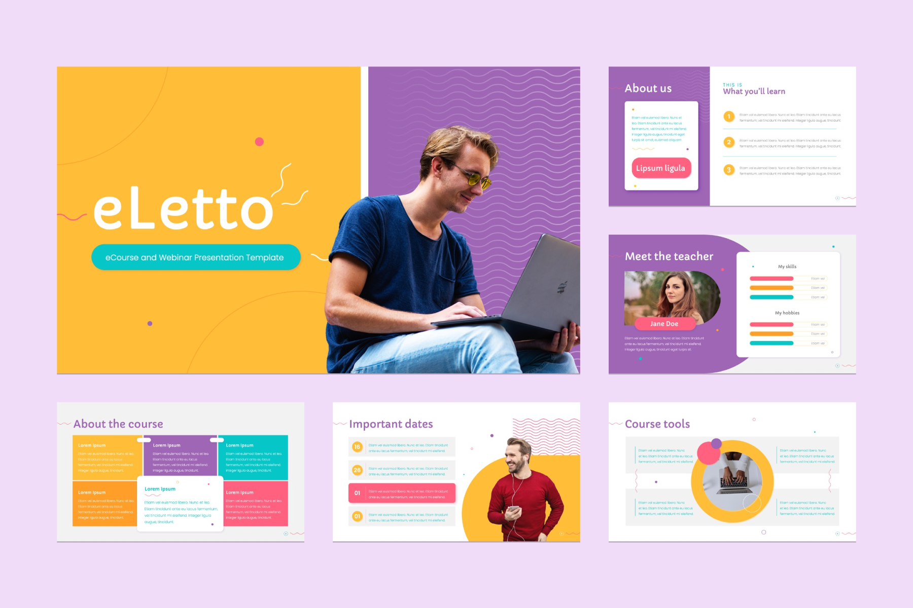 eLetto Presentation Template for Keynote is a trendy and colorful presentation that will allow you to showcase your eCourses, webinars and even testimonials. It contains 30 beautifully designed slides that can be easily edited and adjusted to suit all of your professional and business needs.