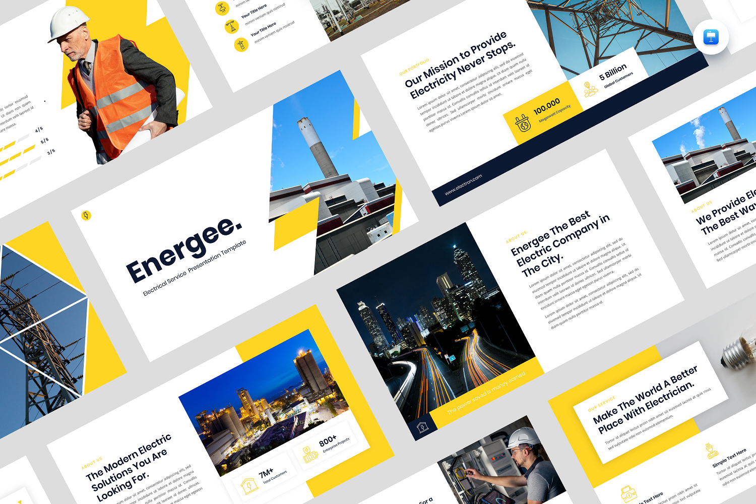 Energee Presentation Template is a comprehensive and professional tool designed to assist electricians, electrical contractors, and service providers in delivering impactful presentations. This template is tailored specifically for the electrical industry, enabling you to showcase your expertise, services, and projects with confidence and clarity.