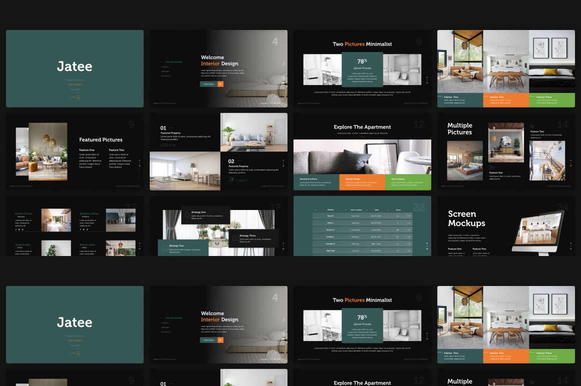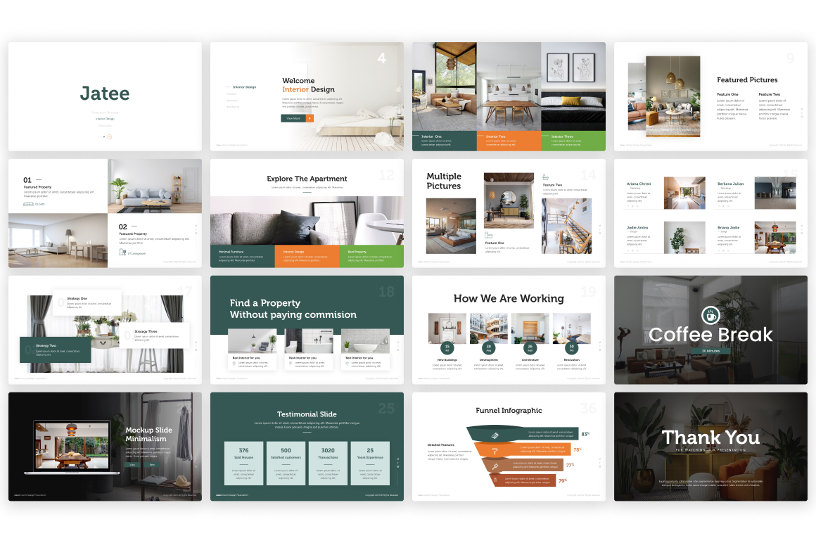 What is the best part? Surprisingly, this presentation template also provides data visualization like charts, diagrams, and infographics to interpret the data concisely. Jatee Interior Minimal Keynote Template is a perfect choice as a promotional tool to help raise awareness, showcase your work, and explain your services packages.
