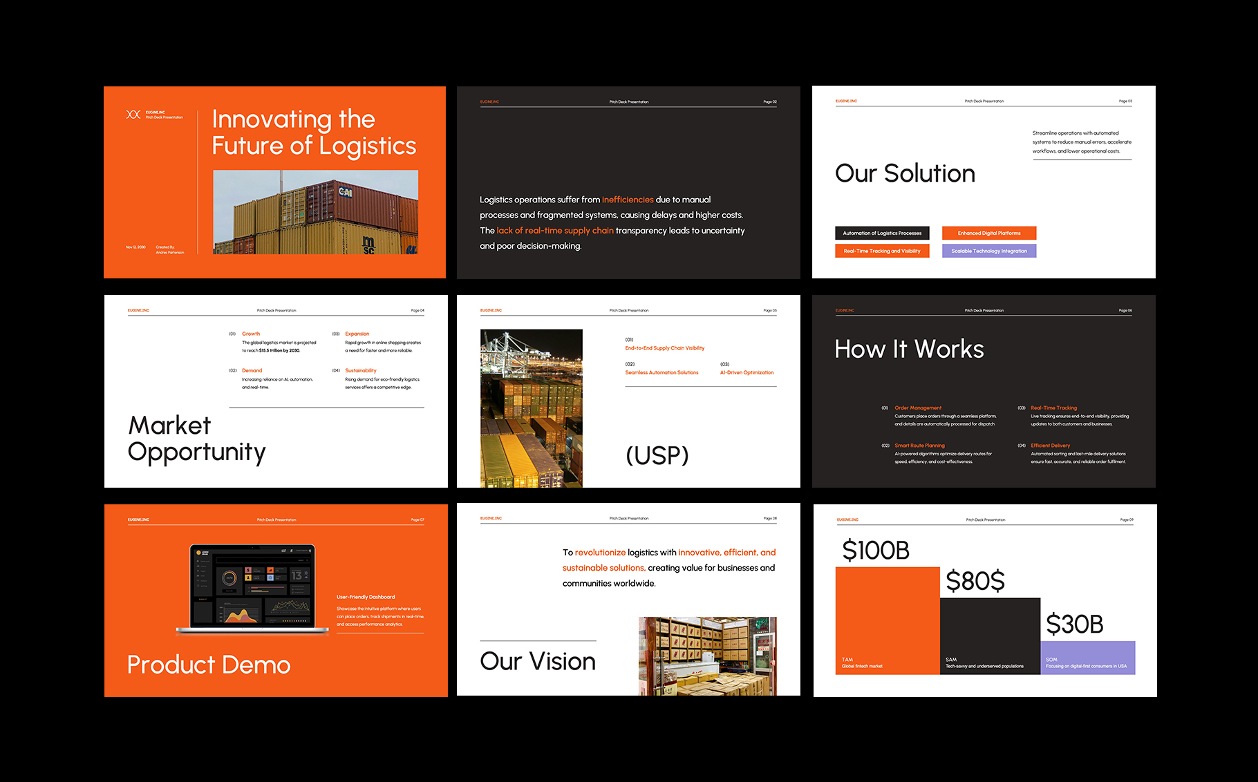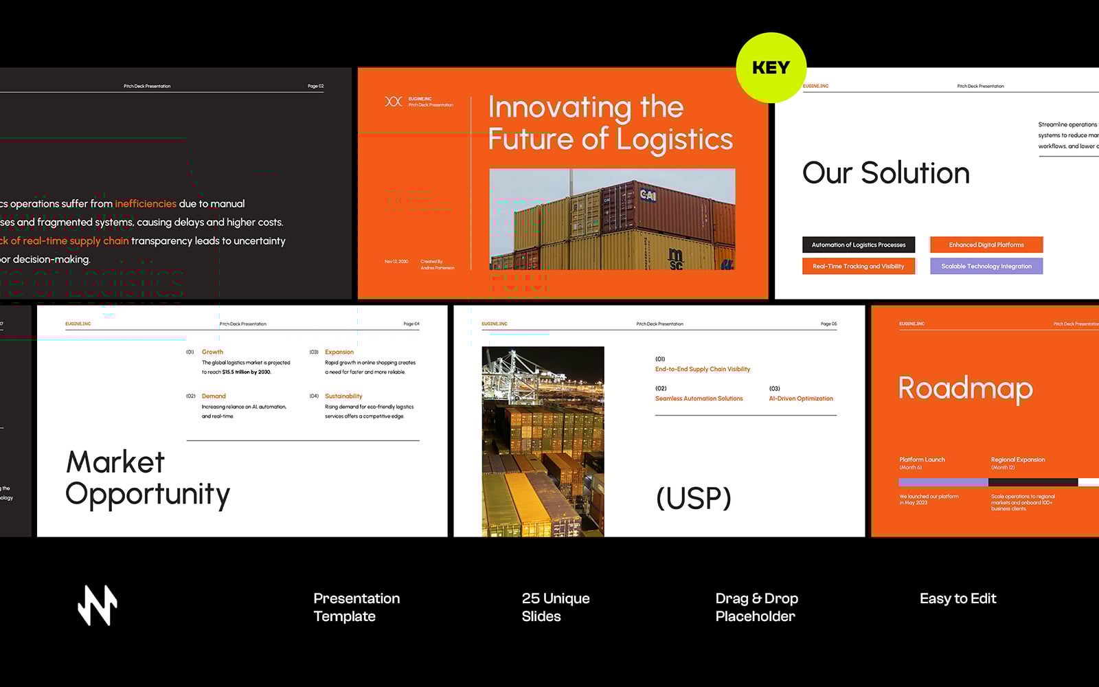 Logistics & Delivery Pitch Deck Keynote Presentation Template is a versatile template that can be used for presenting your business, creative ideas, startups projects, education learning and many more. Get the attention of your audience with our professional and modern design for better results. Many possibilities on our template to match your presenting ideas and save a lot of time on making presentations. This template is easy to use so you can edit it without hassle.