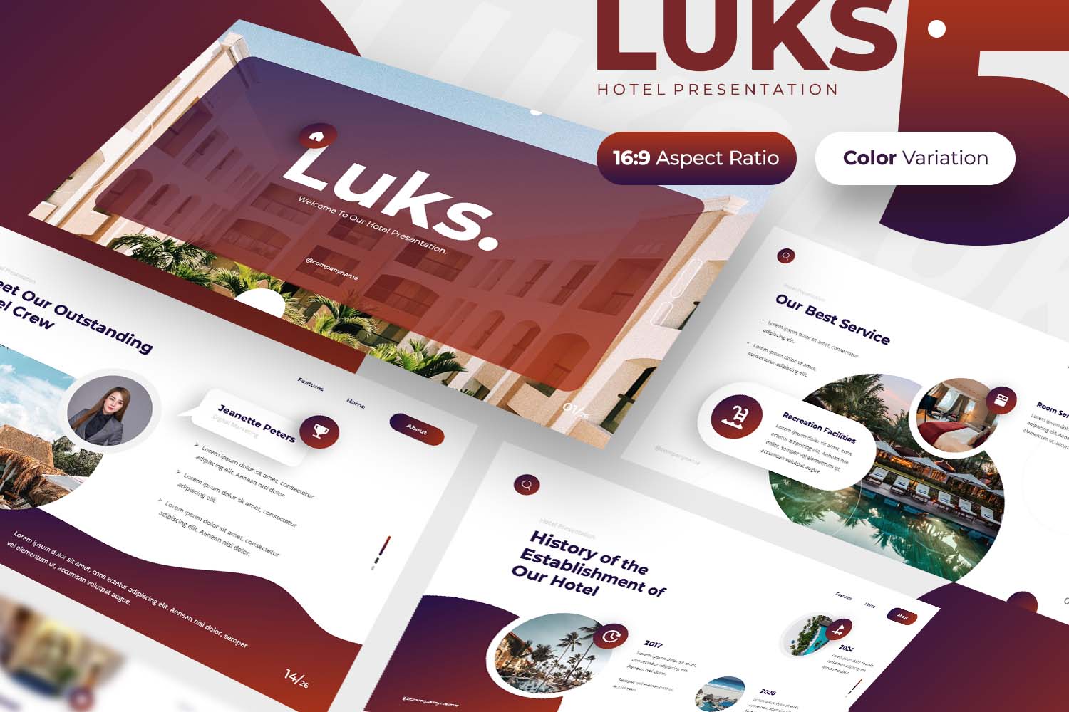 The Luks Hotel Presentation Template is the perfect choice for your hotel presentation requirements. Meticulously crafted with careful attention, its captivating design is tailored to elevate your hotel's presentation. Our templates provide creative designs, compelling content, and professional presentation layouts.