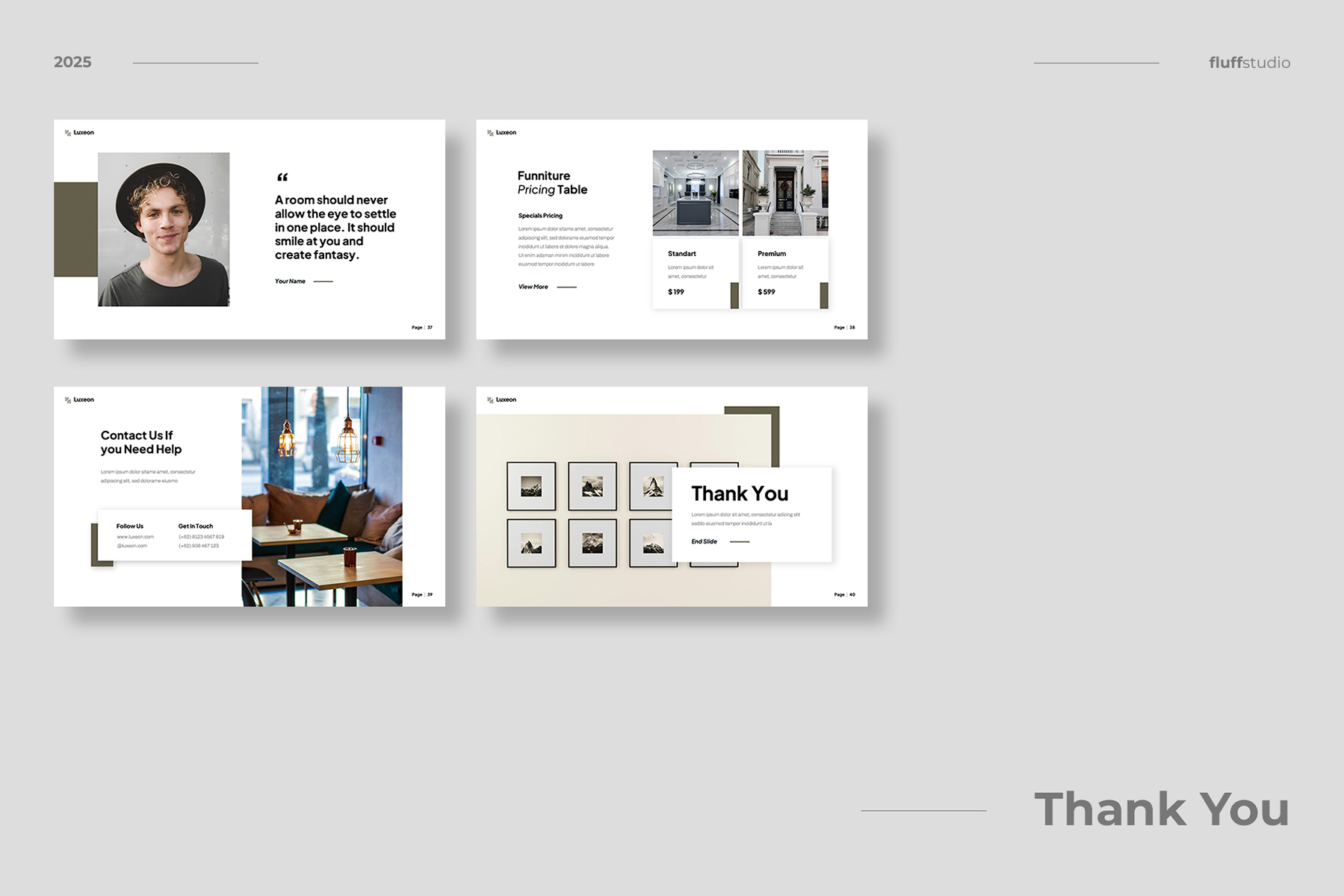 Perfect for any kind of real estate business, agency & consulting, apartment, architecture, interior & furniture design studio, home decoration, developer, project proposal, startup pitch deck, portfolio, company profile, marketing kit, etc.