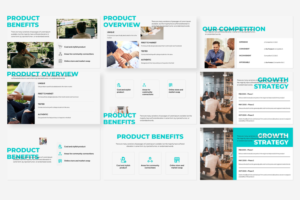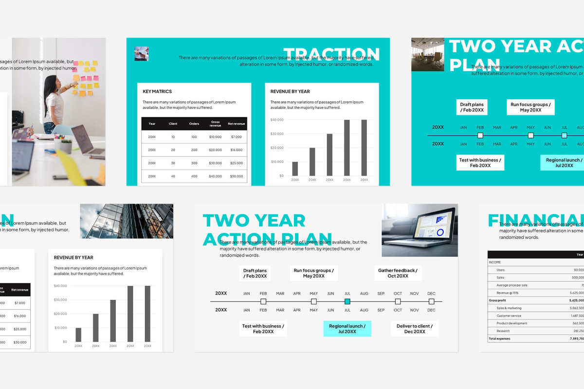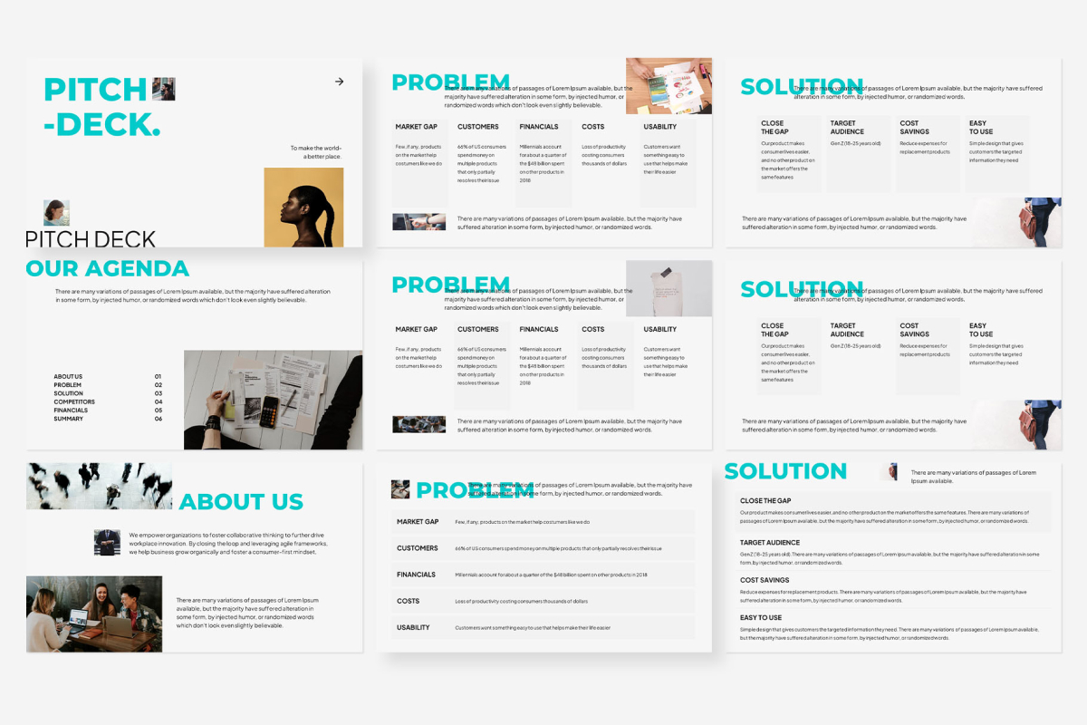 Fresh and unique slide deck based on slide master and of course, has a lot of features. This template is suitable for those who want to show their business in a simple and interesting way. Ideal for start-up, professional use, etc.