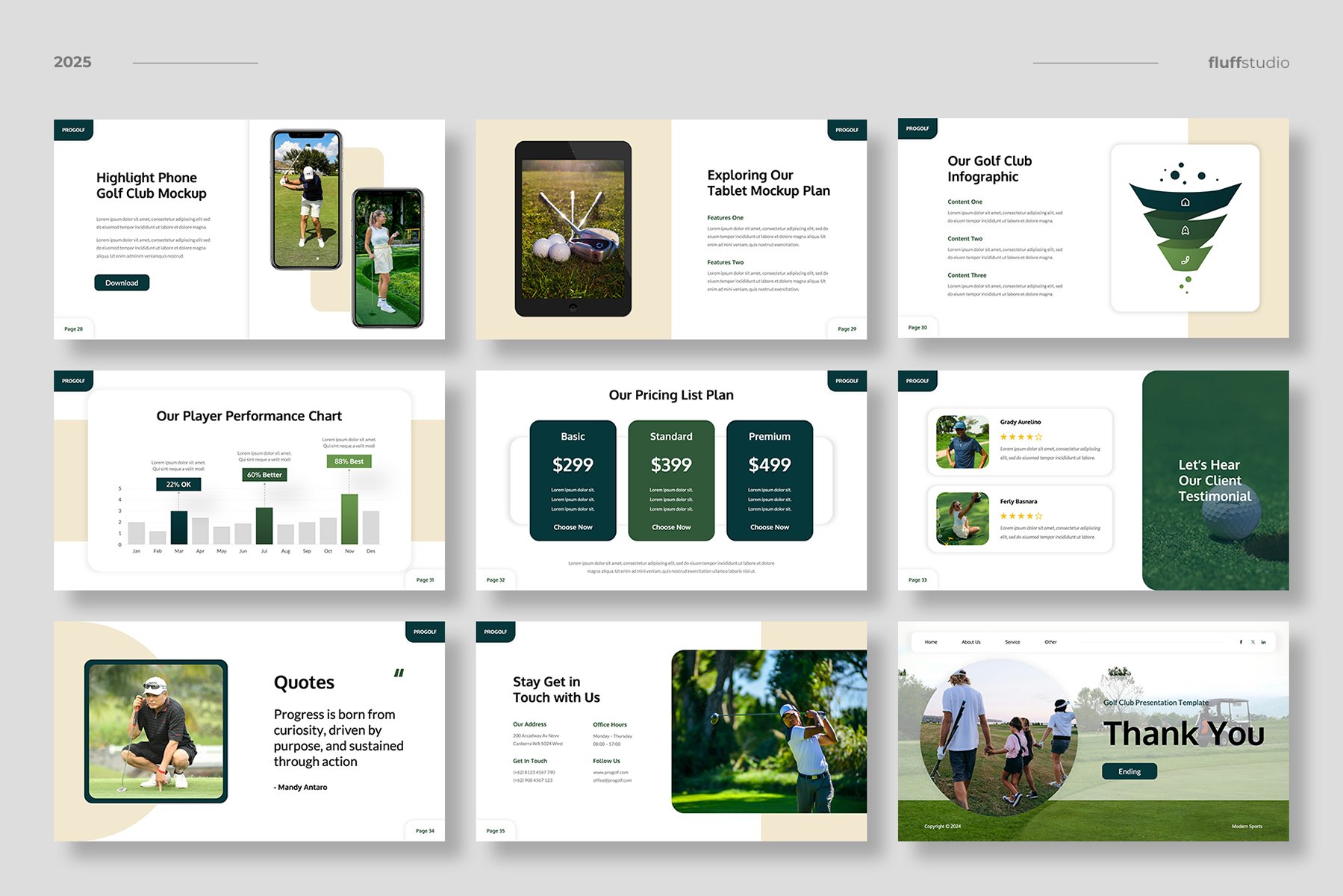 Perfect for any kind of golf sport business, golf club, golf trainer & academy, golf court & course, golf event & tournament, golf equipment, golfwear, golf clothing brand & lifestyle, project proposal, startup pitch deck, portfolio, company profile, marketing kit, etc.