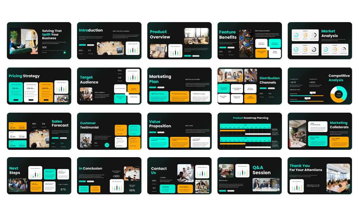 This presentation template is Ideal for agencies, freelancers, and professionals, this template offers a modern, sleek, and professional design concept, enabling you to create high-quality pitch decks in a matter of minutes. Say goodbye to the hassle of starting from scratch and focus your valuable time and attention on crafting compelling content, while the engaging visual style is ready-made for you.