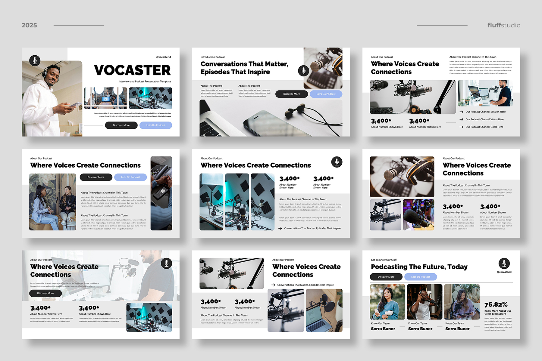 Perfect for podcast channel, entertainment business, interview & talkshow program, news & media, radio broadcasting, audio recording, project proposal, startup pitch deck, portfolio, company profile, marketing kit, etc.