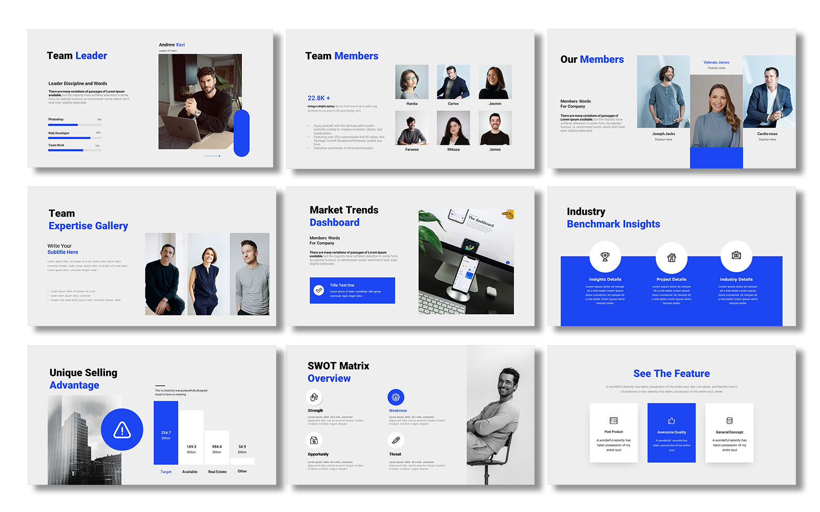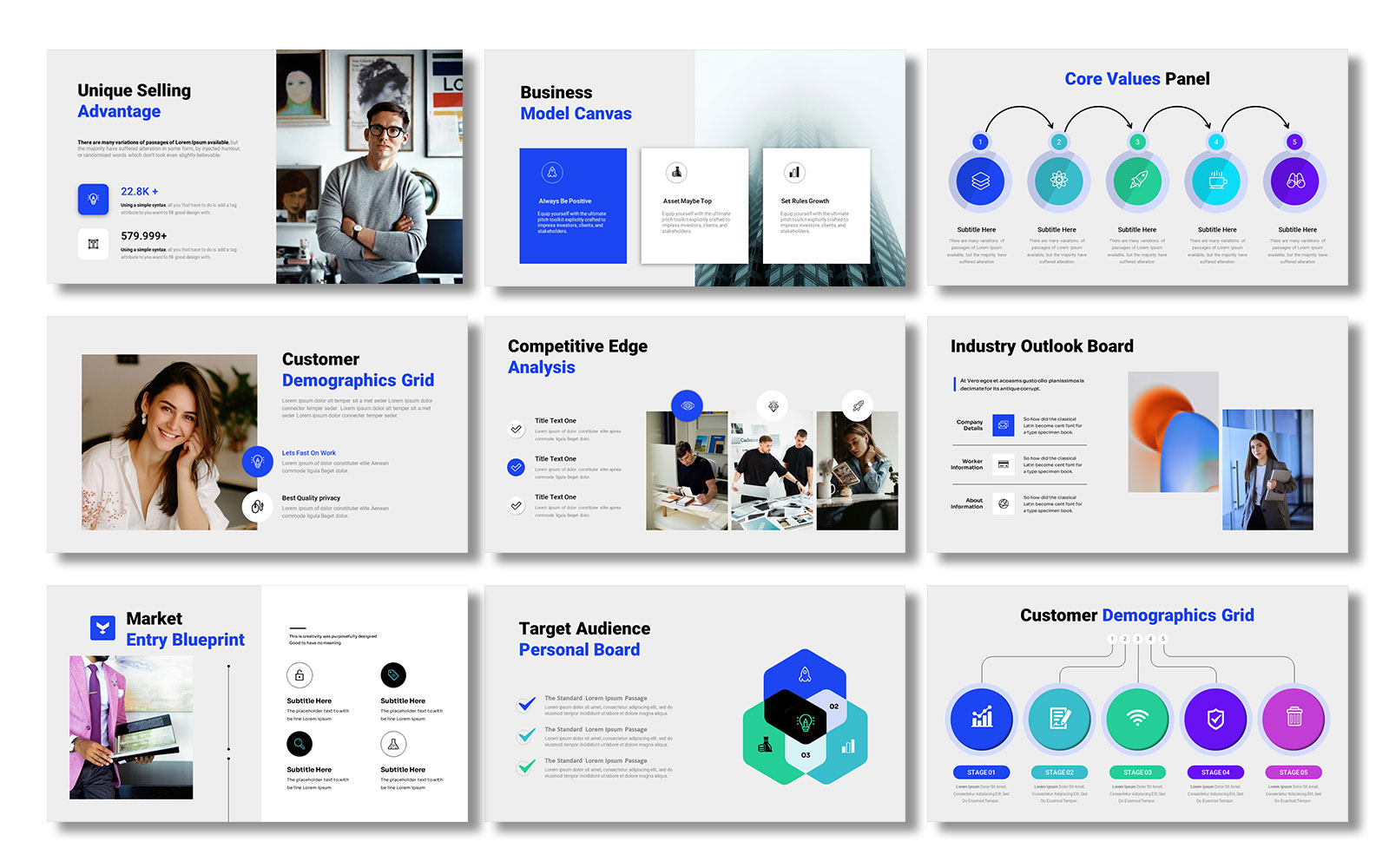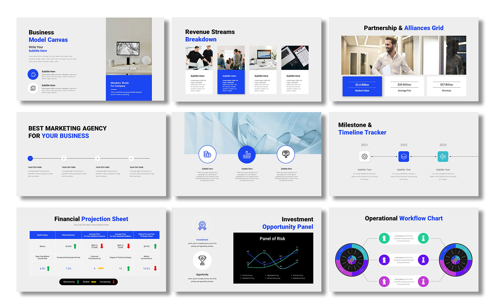 - Market Opportunity: Highlights the size of the market, growth potential, and target audience.
