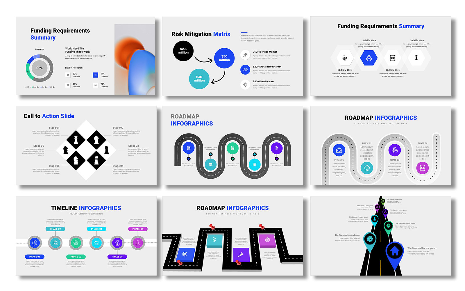 - Financials: Presents financial projections, including revenue, expenses, and funding needs.