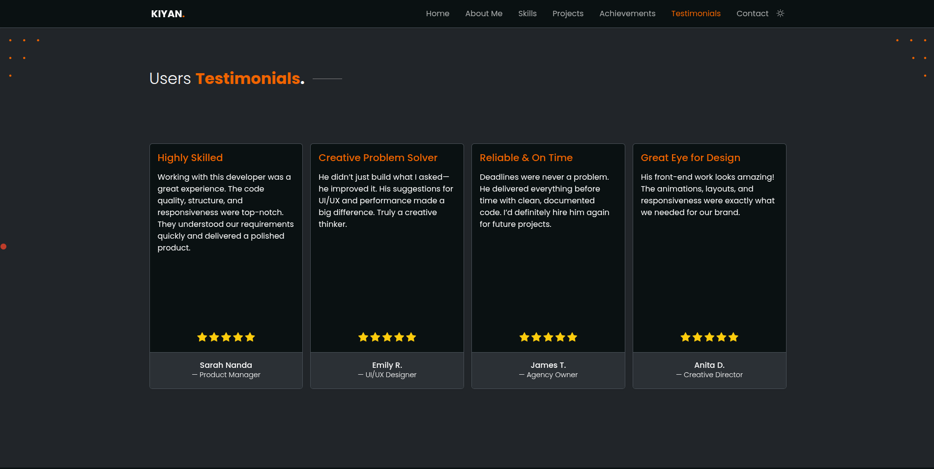 If you are a Developer , Designer , Photographer , Model and you want you to build you a website for your portfolio .It is the right place to show your work widely. Kiya Theme give's you a modern , clean , responsive portfolio template for your work showcase.