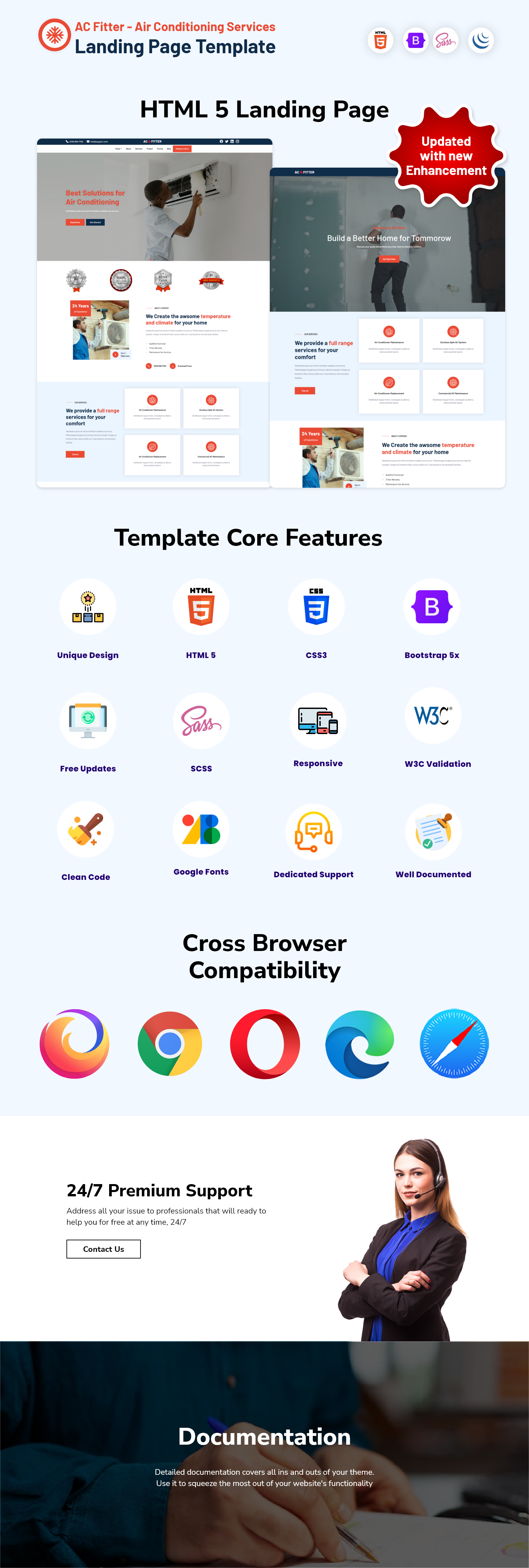 Themesale brings you the best HTML5 and SCSS landing page for AC Installation, AC Fixing, AC Repair, Replacement, and Maintenance Services. It will perfectly suit your air condition business With the help of this landing page, you can start your business website very easily because this website template is designed by following all the unique and latest trends. Color combinations have been used in this landing page template which perfectly matches the professional plus nice-looking look while also trying to whiten a good functionality.