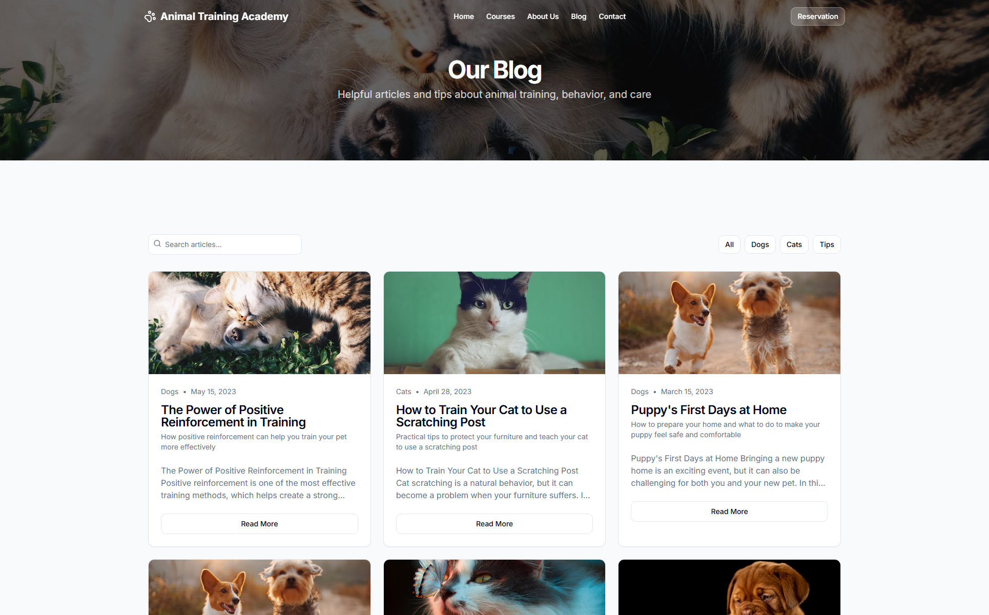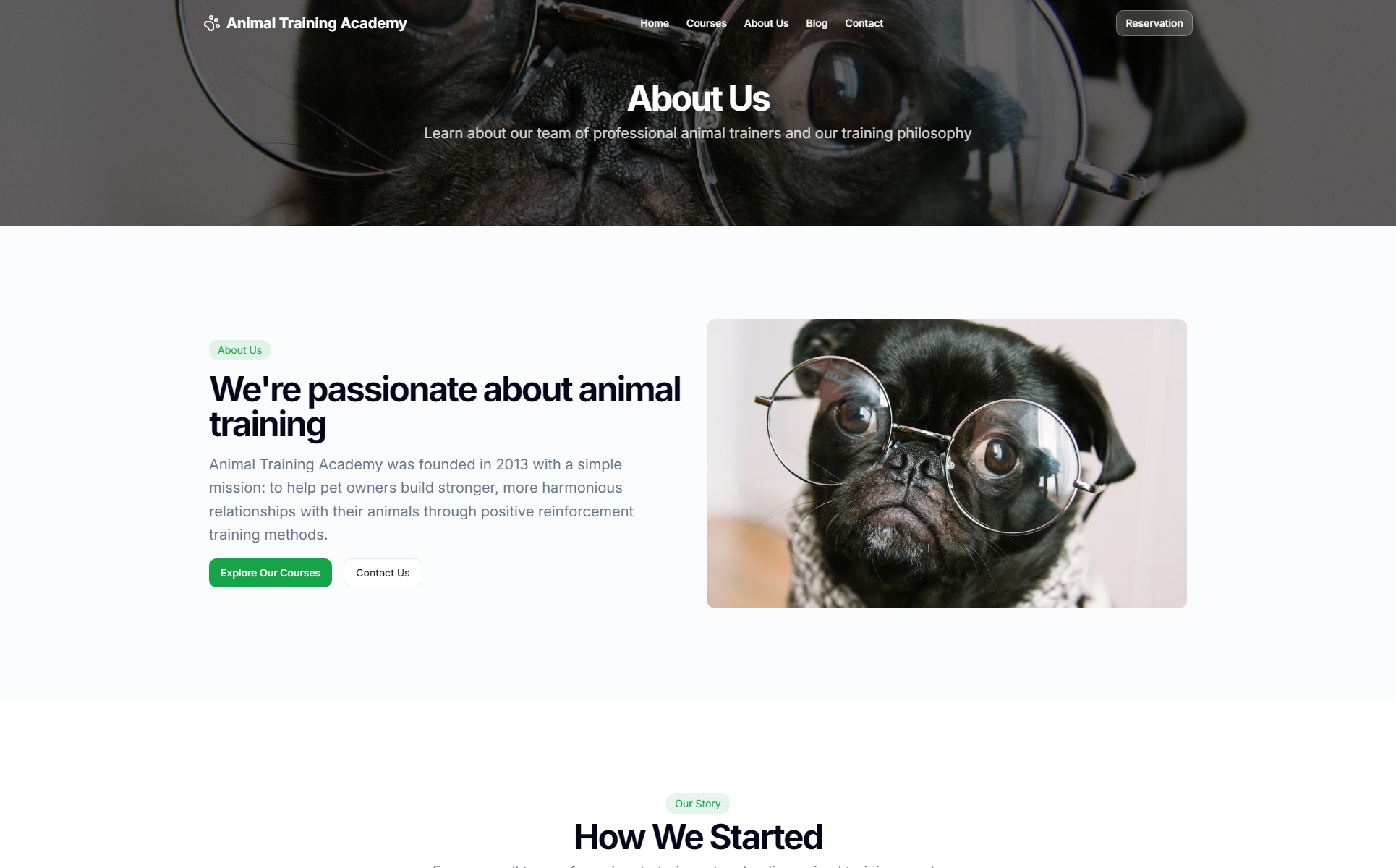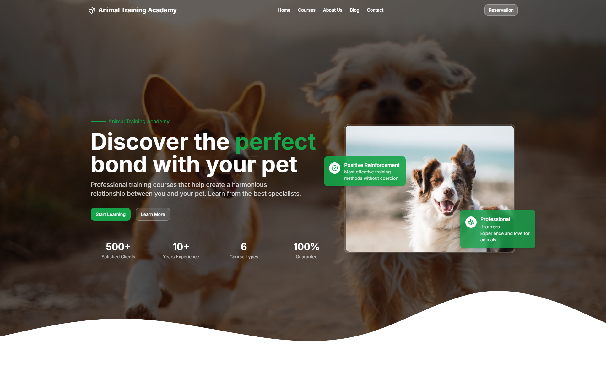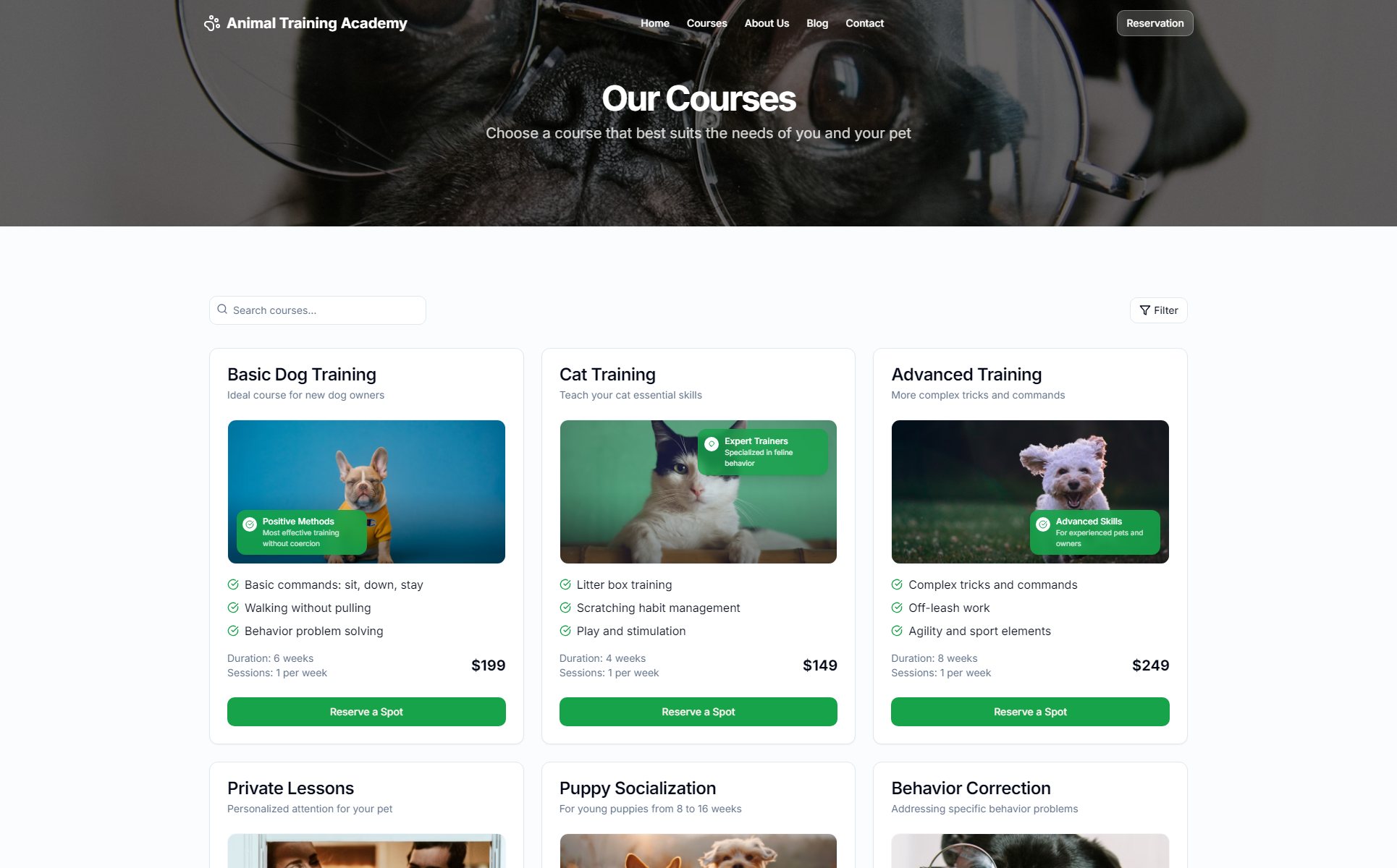 Animal Training Academy - Pet Template | Next.js & Tailwind