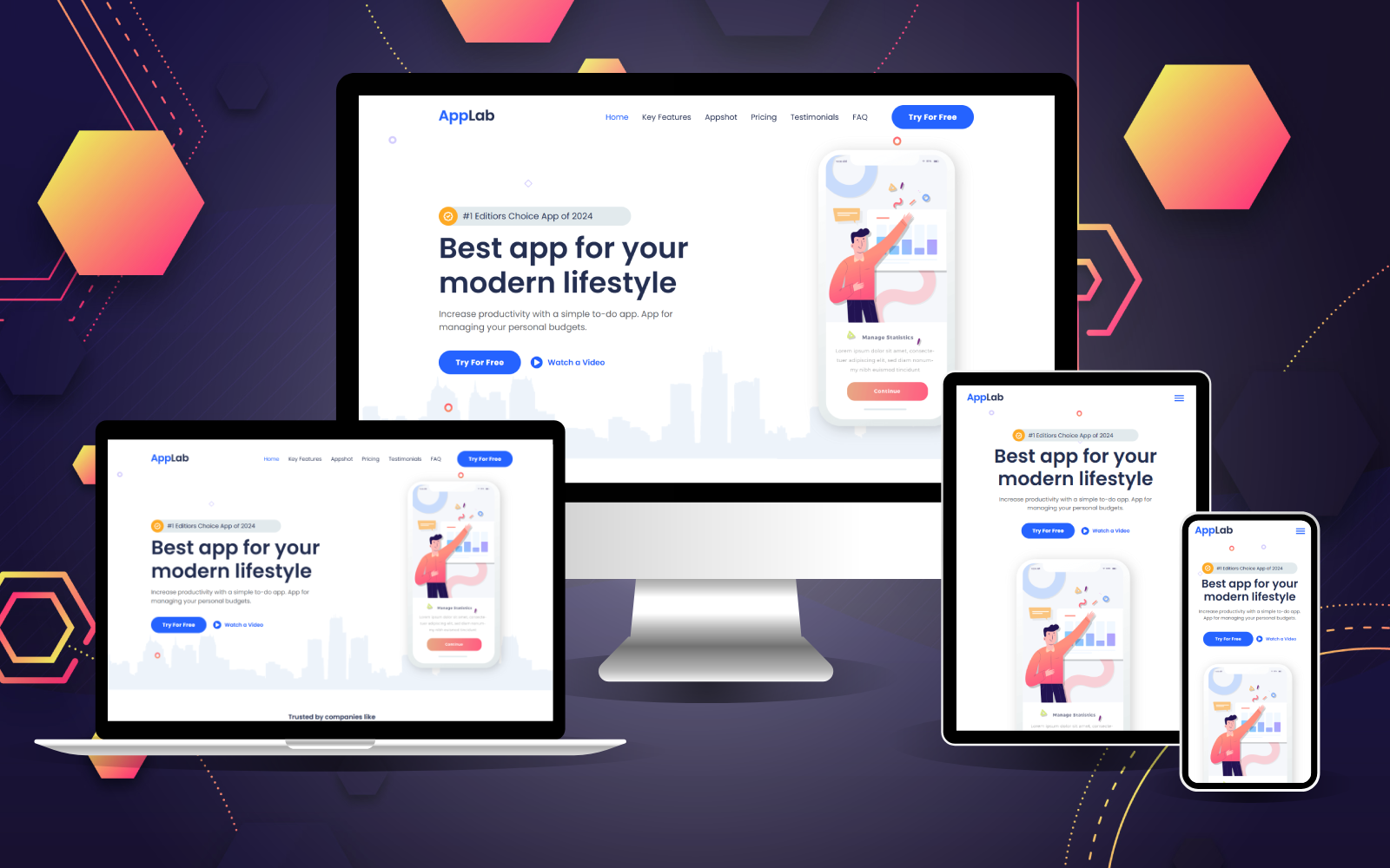 AppLab is an App Landing Page HTML Template that is fully responsive and mobile-friendly. AppLab template is a better way to present your app or product. It is very clean, powerful, and easy to use. It's not only used as an app landing page; you can also use it for any product landing page.