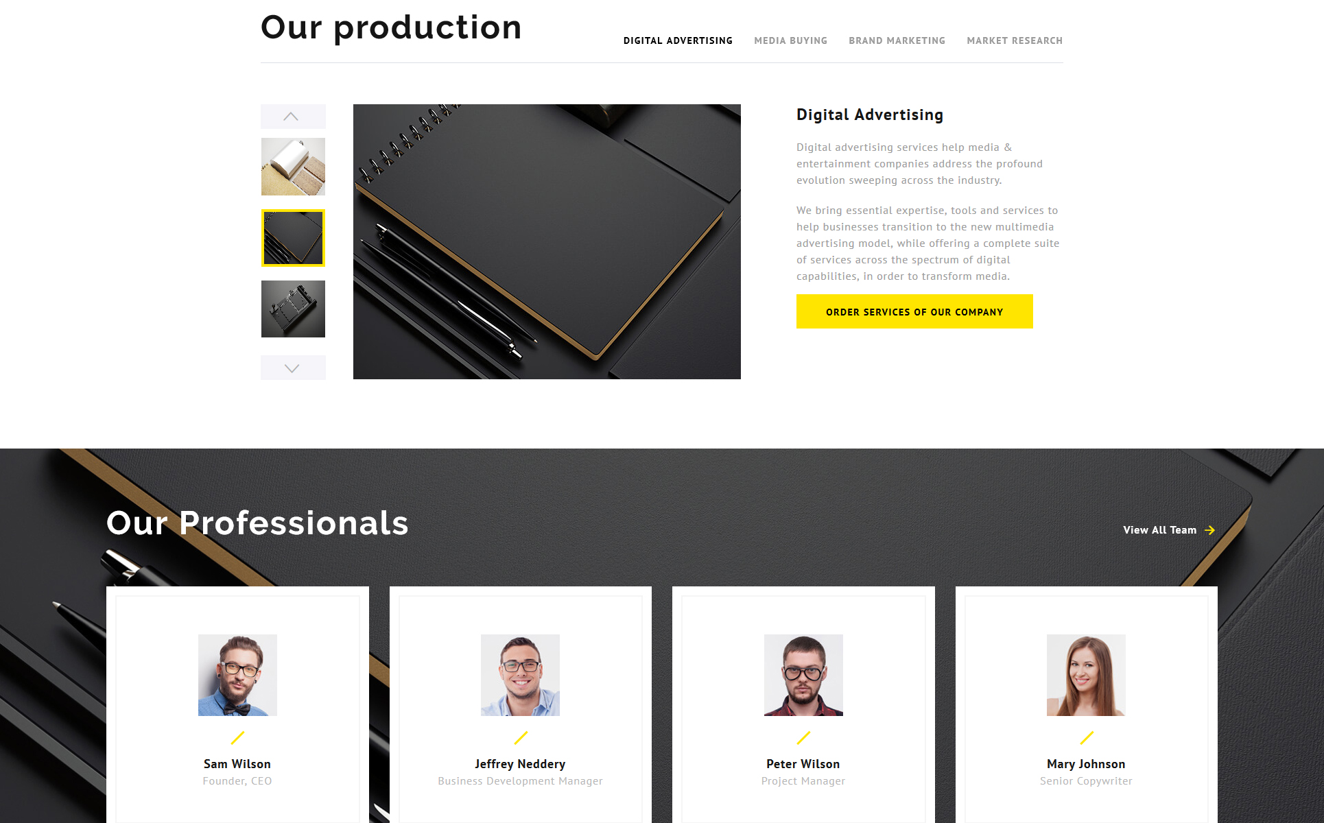 However, our advertising HTML5 landing page template offers a lot more than these features. For example, it provides a range of sections and blocks. They can be used to shape your content and showcase your advertising company's projects. We also recommend using the well-animated gallery and thought-out menu. They can make your site more informative and make it easy to navigate. And with sliders and counters, you can add more important information for your potential clients.