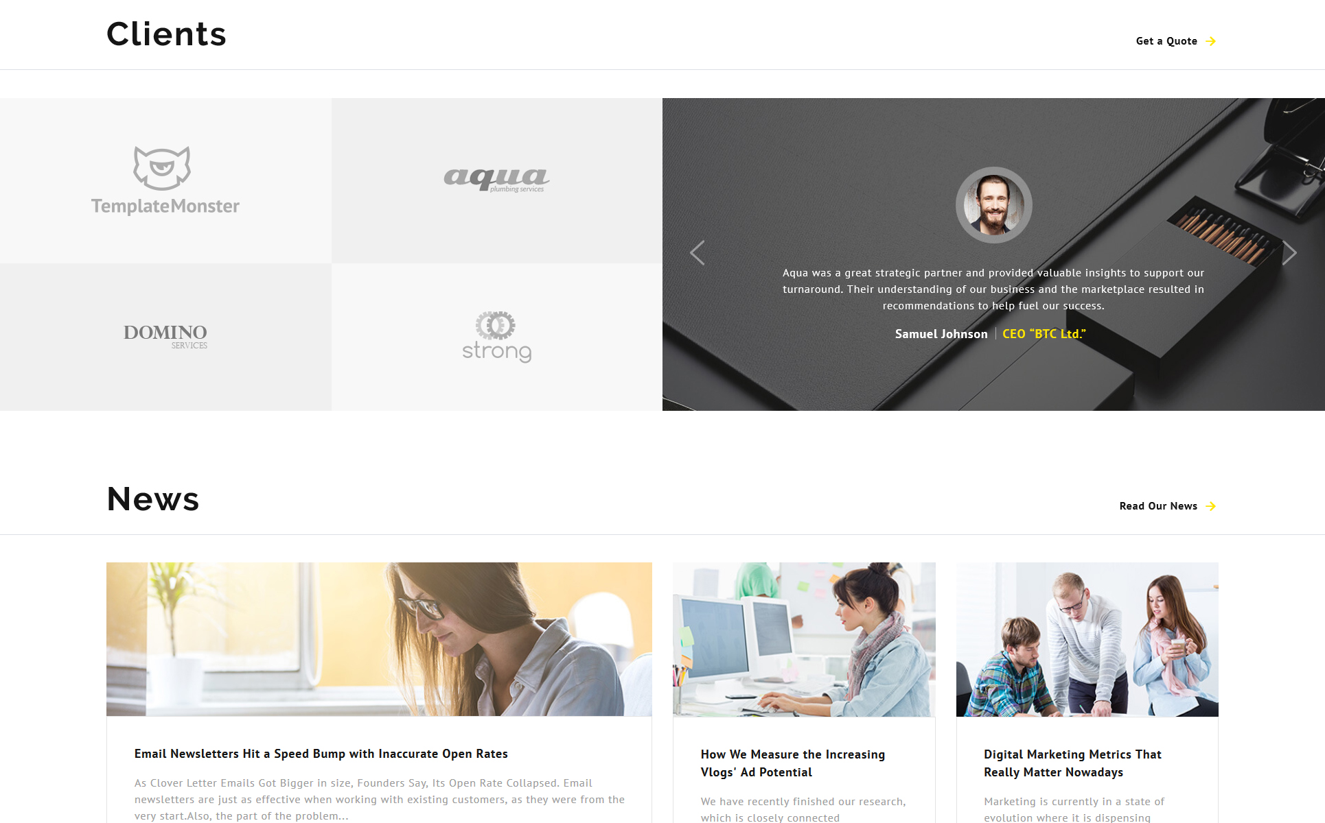 The Aqua advertising HTML5 landing page template provides a modern and impressive design. It is perfectly combined with a detailed and content-oriented layout. It is suited to include all kinds of content your website may need. Also, this HTML5 can fit a variety of related topics, such as public relations, online marketing, etc. Moreover, it includes a variety of powerful features. They are aimed at helping you create a stable and interactive website: