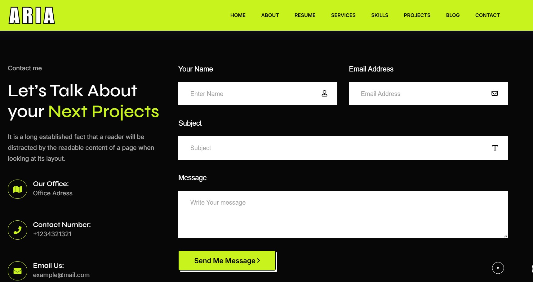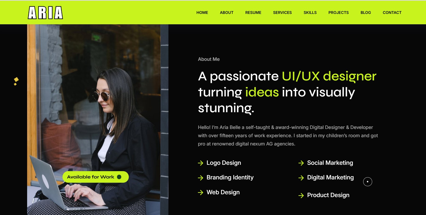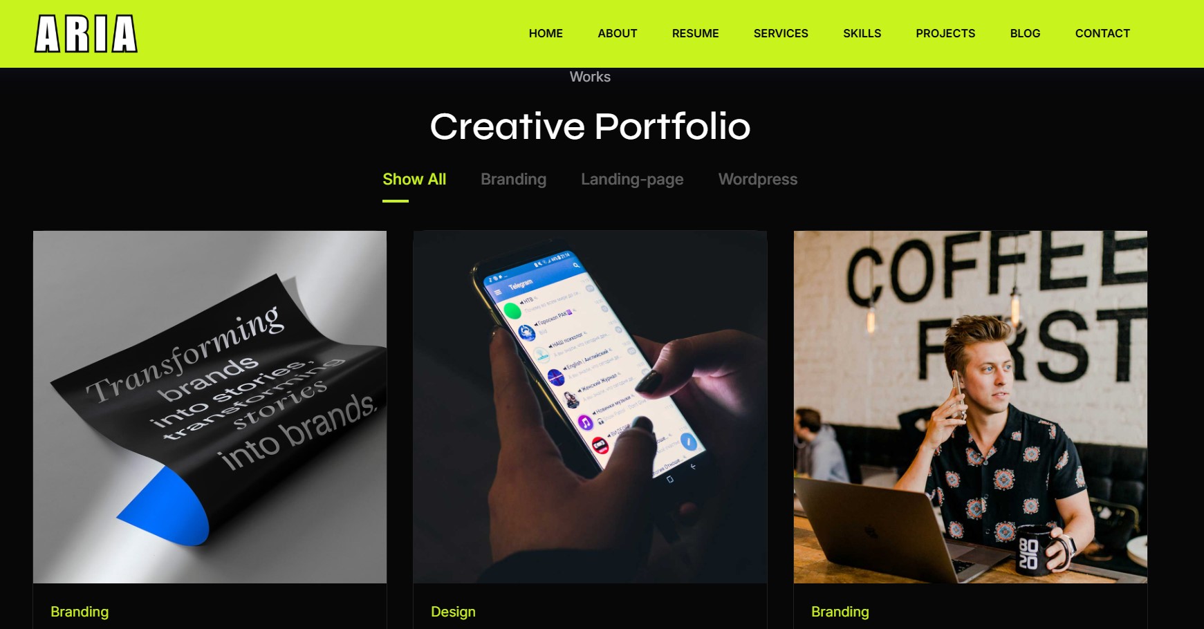 Aria- Personal Portfolio HTML Landing Template Landing Page Template