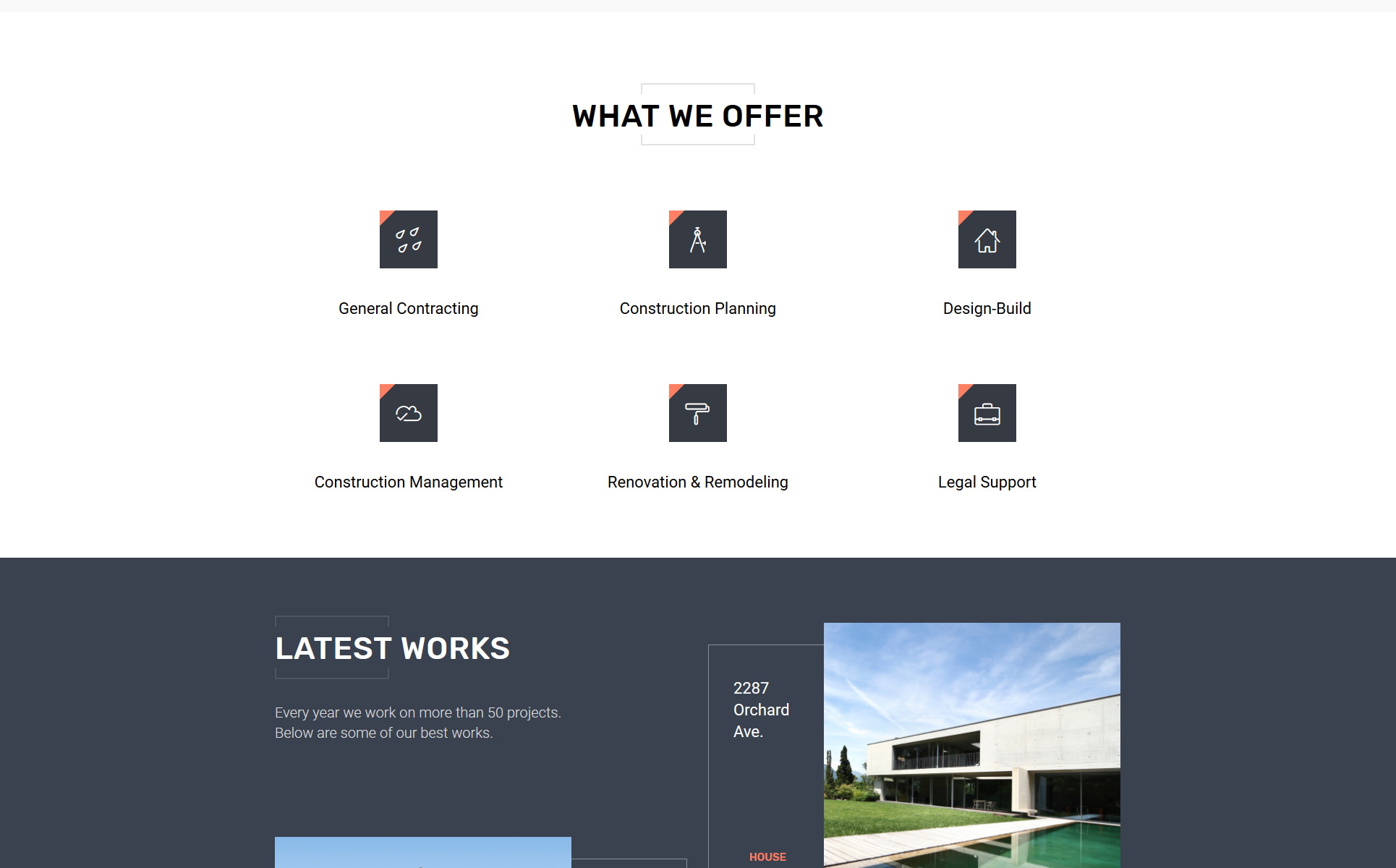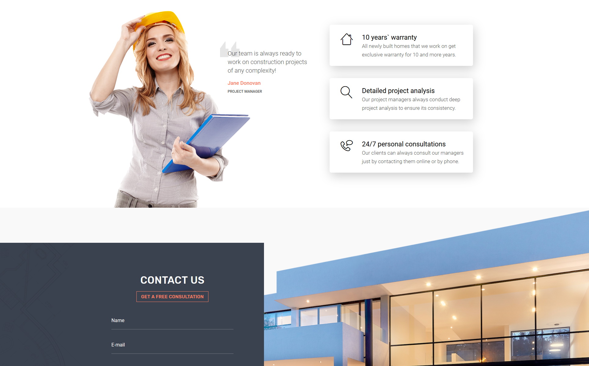 Our developers made a lot to boost this website. They based it on a valid HTML code and made sure that it works perfectly on all devices. Due to its code, this construction company landing page is mobile-friendly too. It means that your website will look great on smartphones too. Thus coding is well-optimized and always works fast. It is important if you want to create an impression of a reliable company.
