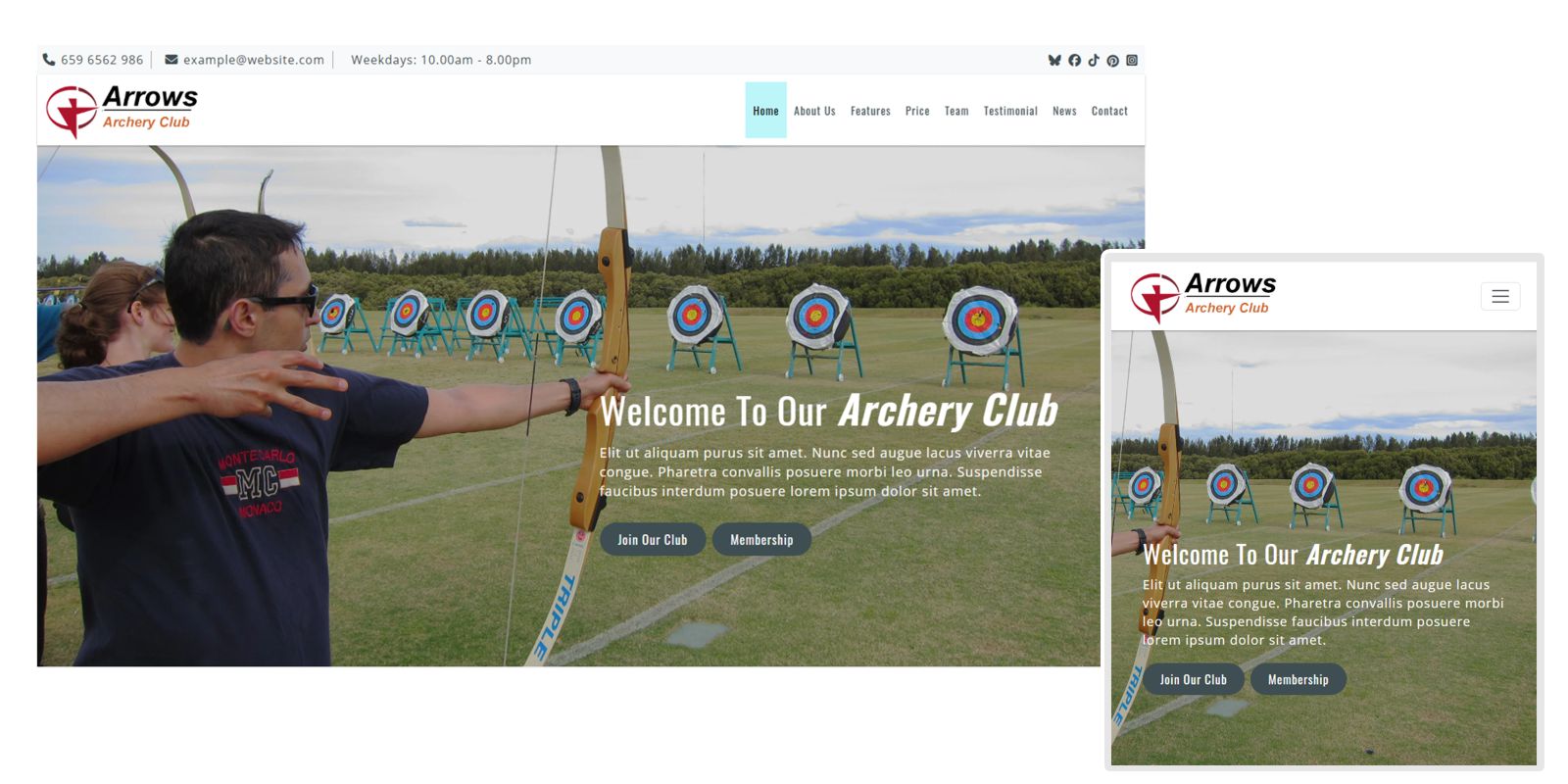 Designed with simplicity in mind, the Arrows Template ensures that you can get your website up and running quickly. It’s perfect for clubs that want to focus on delivering an engaging user experience without the hassle of complicated web development. The clean code structure and modern technologies behind the template ensure that your website will be fast, secure, and optimized for search engines.