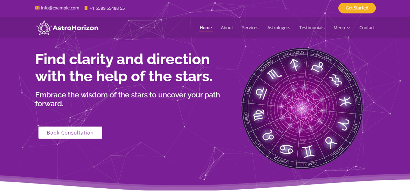 Whether you're a seasoned astrologer or just starting your celestial journey, this template is your perfect online companion. With its modern design and user-friendly features, you can focus on what you do best—guiding others through the stars.