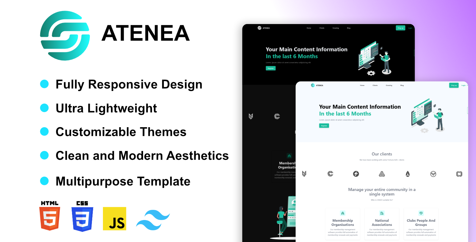 The Atenea Ultimate Landing Page Kit is a multipurpose, versatile, powerful solution for building stunning landing pages that suit any business or personal project. Whether creating a portfolio, promoting a product, or launching a SaaS platform, this template has you covered with modern design and clean, efficient code.