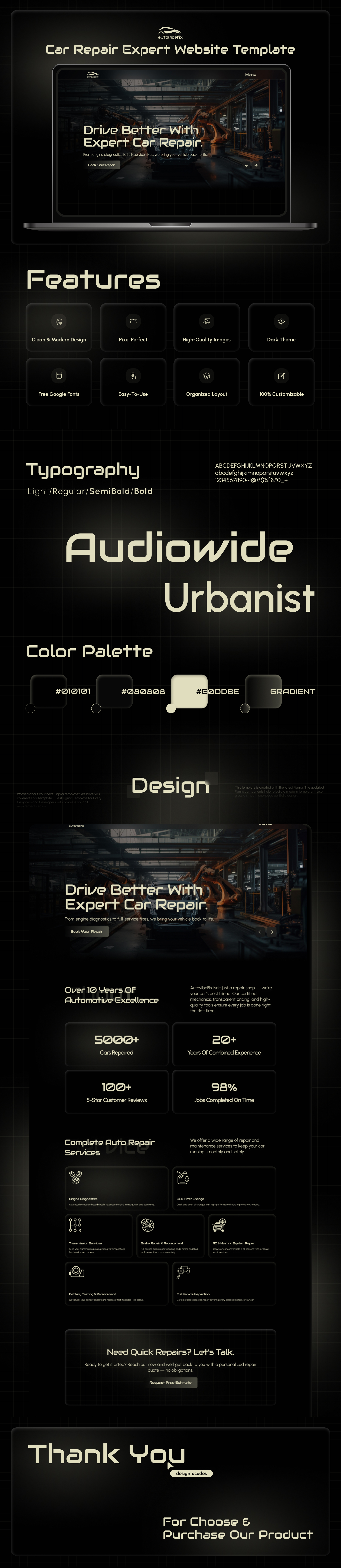 Looking to give your auto repair business a fast, professional, and high-performing website? The AutoVibefix Car Repair Next.js Template is designed for mechanics, auto shops, tire centers, and vehicle service providers seeking a sleek online presence that fosters trust and drives bookings.
