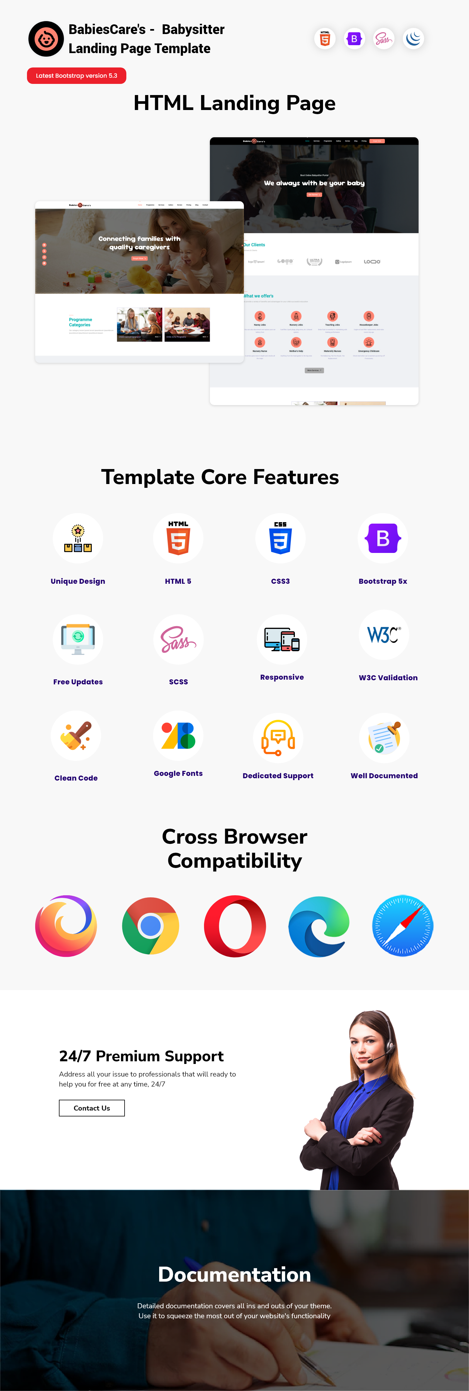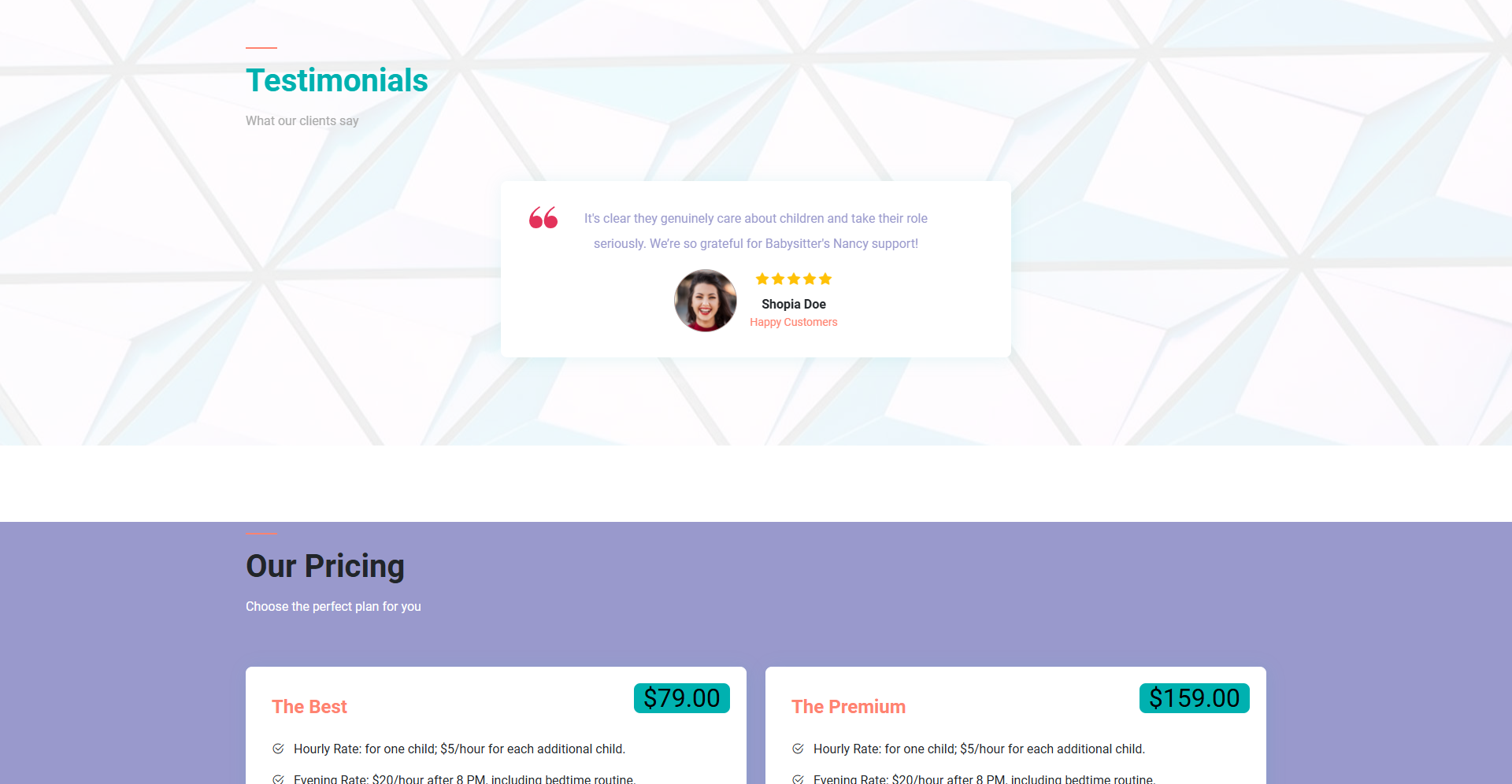 Baby's Care is a unique landing page template for finding a babysitter that lets you design a professional website very easily. This design template is aimed at creating baby care, babysitting, Nancy, and other such websites and is best for its type of unique quality landing page you get for advertisement campaigns. Babbies car's is a high-end landing page template to give a professionally designed page to your best marketing plans. We have used Swiper Slider which has the best sliders built into it and is unique for showcasing your high-quality portfolios.