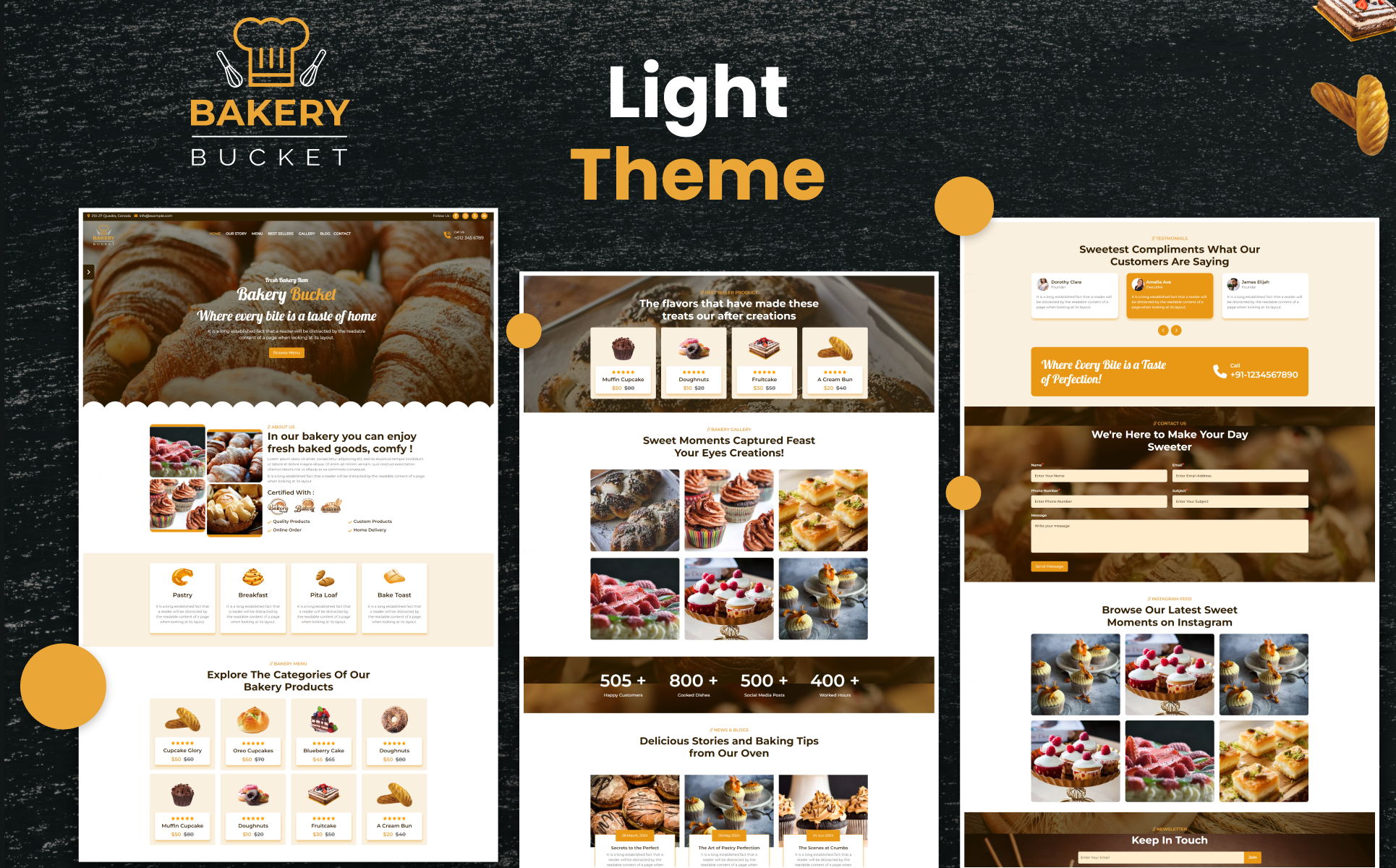 Lucid ThemesLab presents the all new Bakery Bucket landing page template. A professionally designed one-page HTML website template Bakery Bucket this template is perfect for bakeries, pastry shops, cafés, and cake boutiques looking for an elegant online presence. Designed with Bootstrap 5, HTML, CSS, and JavaScript, With a modern and responsive design, Bakery Bucket ensures an engaging user experience while showcasing your bakery’s delicious treats in a structured and visually appealing layout. With light and dark vibrant color themes that are fully customizable, interactive UI elements, and a responsive design, this template offers an interactive experience to bakeries enthusiasts and optimized to provide an awesome user experience across all devices.