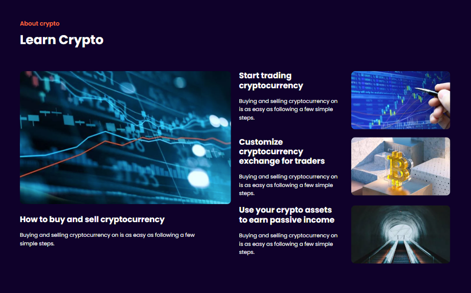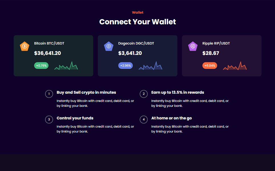 - Crypto Exchange Features: Highlight real-time pricing, trading options, and transaction security.