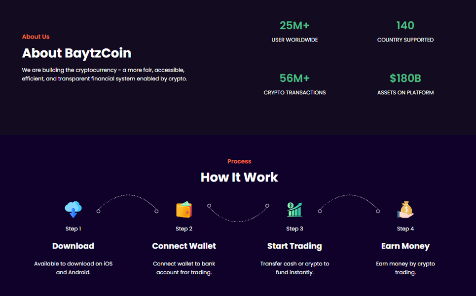 BaytzCoin - Crypto Exchange and Buy/Sell HTML Website Template Landing Page Template