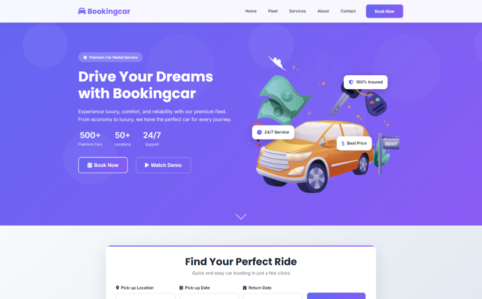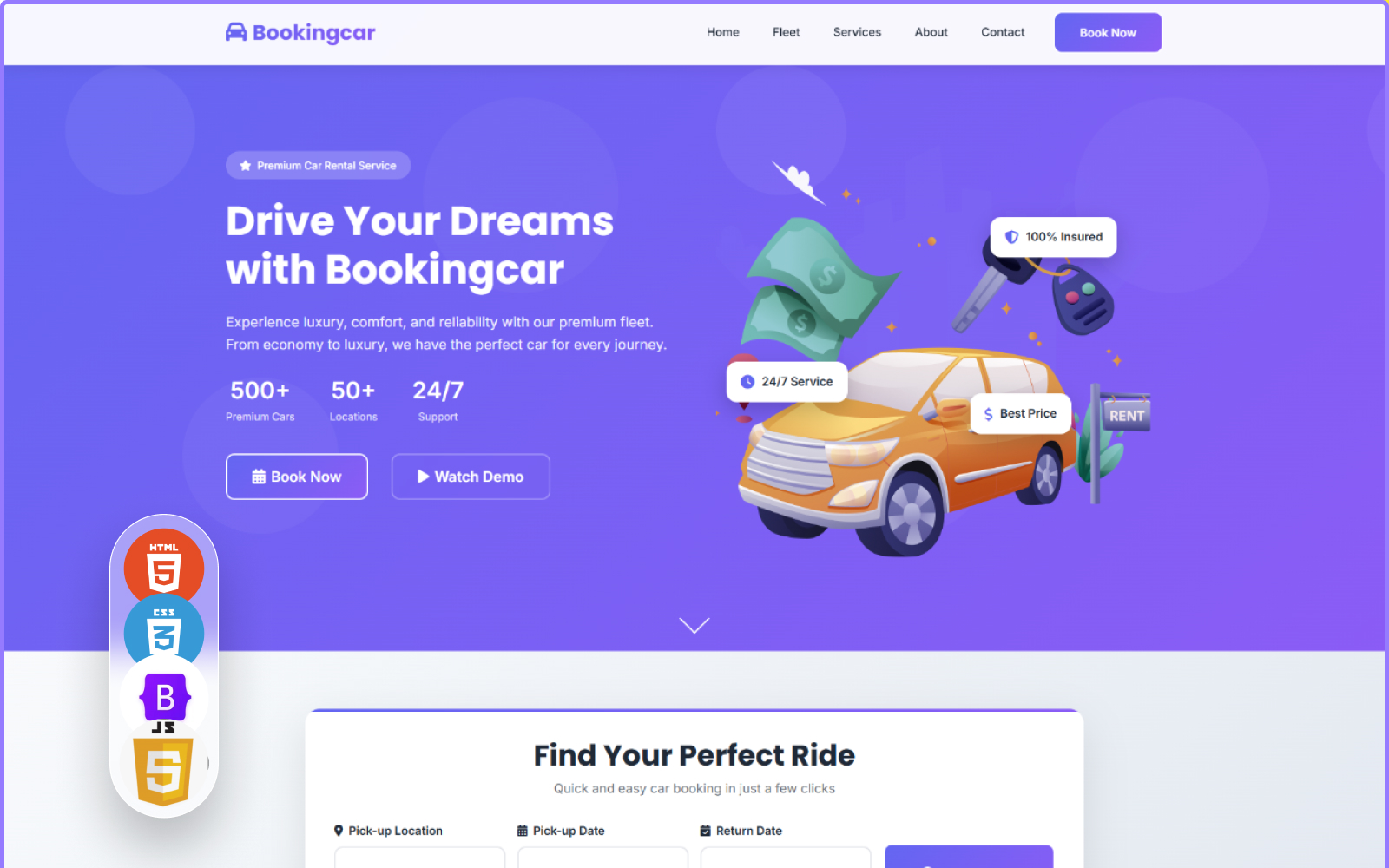Bookingcar – Premium HTML Landing Page for Car Rentals & Vehicle Bookings