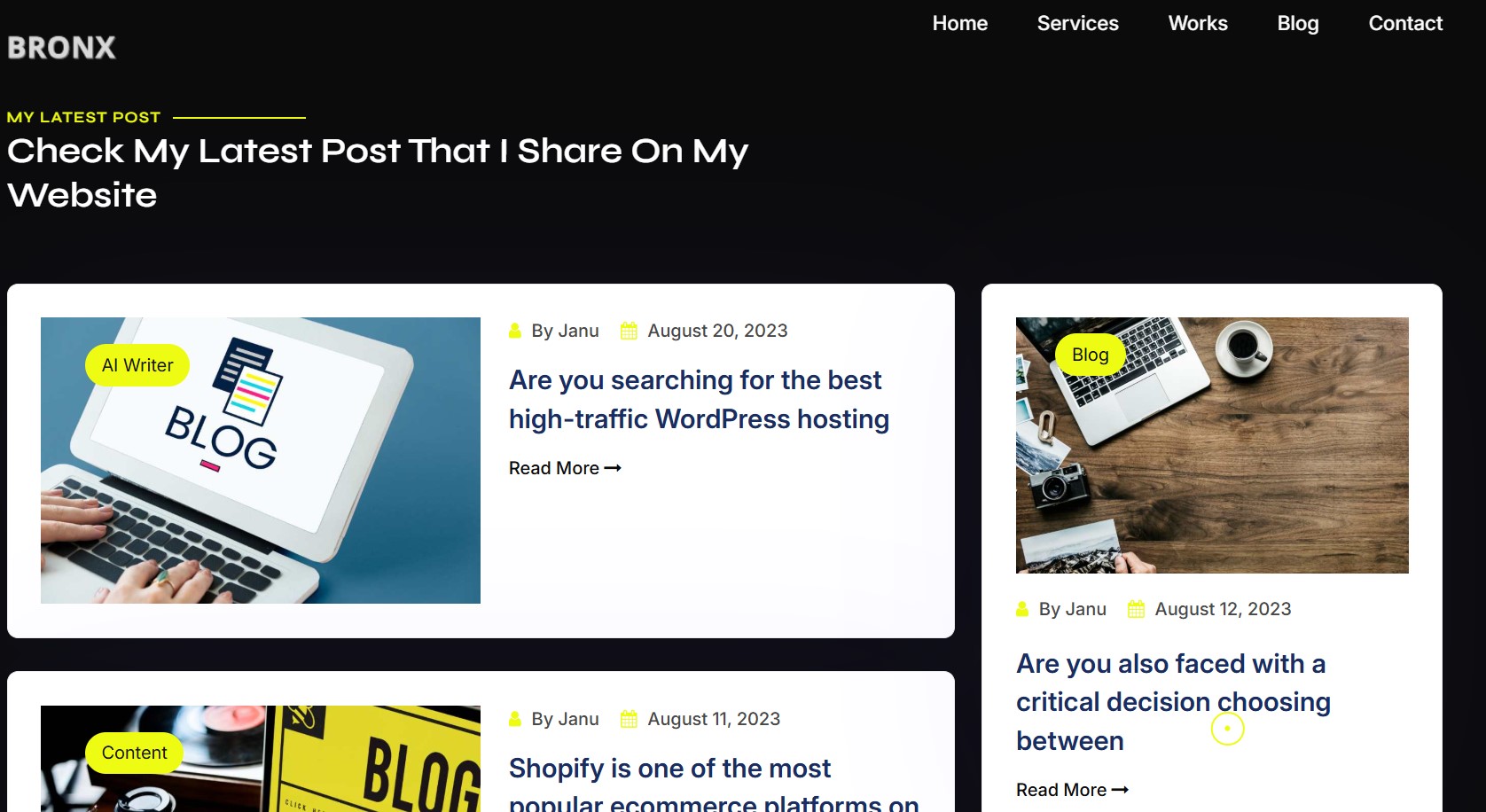 With its minimalist style and professional structure, Bronx isn’t just a portfolio—it's your digital identity presented at its best. Perfect for anyone seeking a clean, impactful, and engaging online presence.