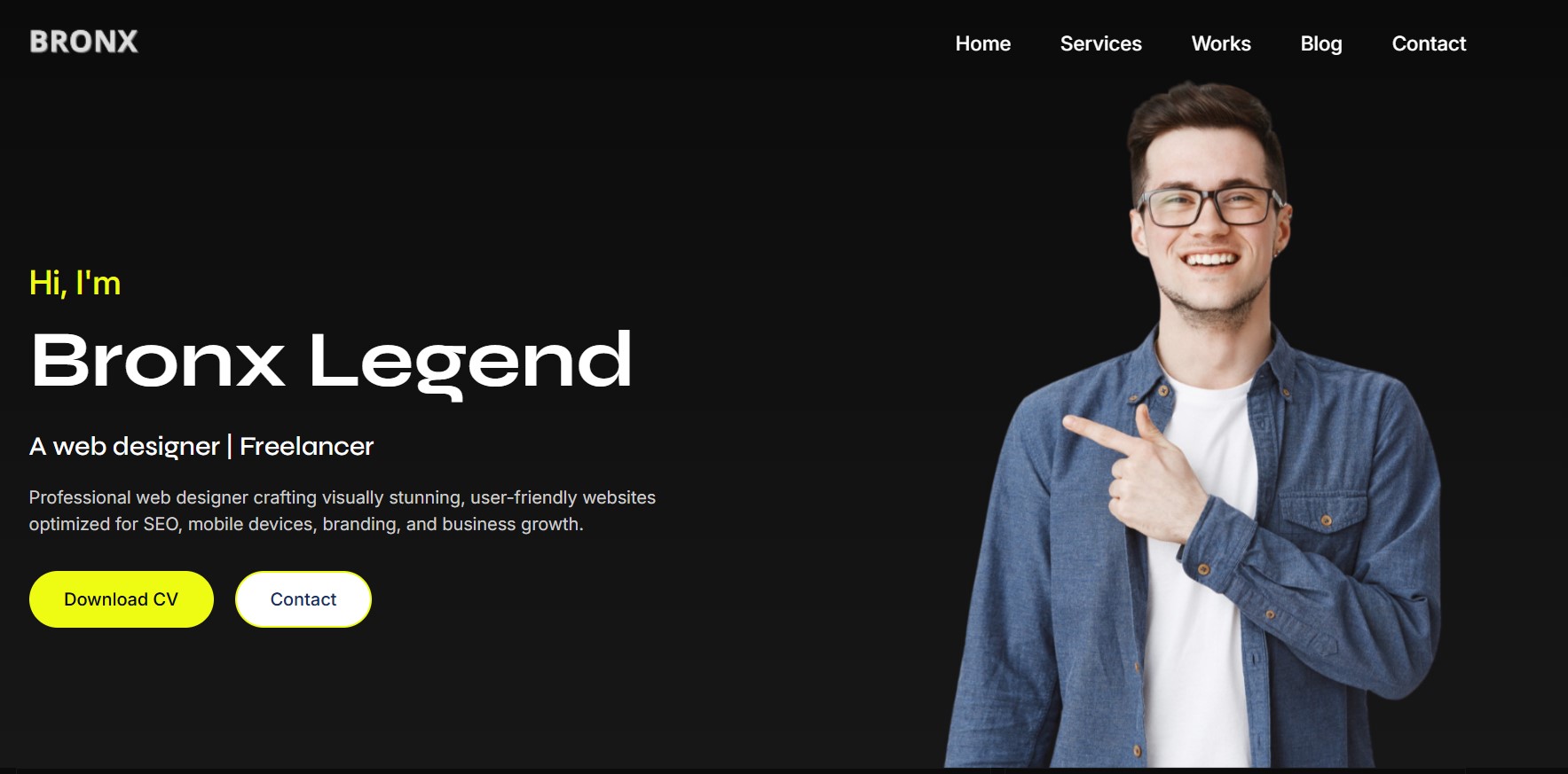 Bronx - Personal Portfolio Landing Page HTML Template Landing Page Template