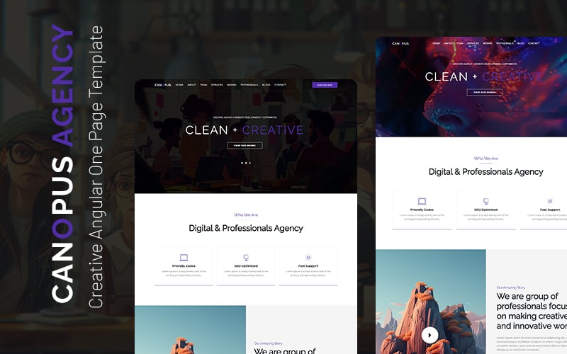 This template is designed for creative professionals, agencies, and businesses who need a straightforward yet effective online presence. Built with Angular 17 and Bootstrap 5, it provides a solid foundation for a one page website that works well across all devices. The layout is clean and organized, making it easy for visitors to find what they need without unnecessary distractions. Whether you're showcasing your portfolio, services, or team, Canopus combines aesthetics with high performance.