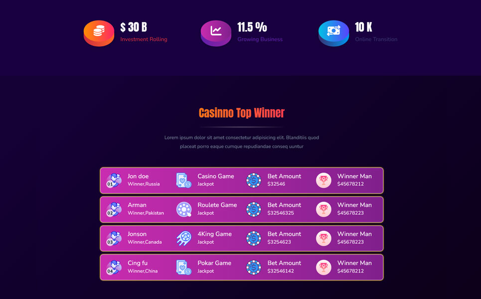 Casinno - Online Gambling & Casino HTML5 Landing Page Template