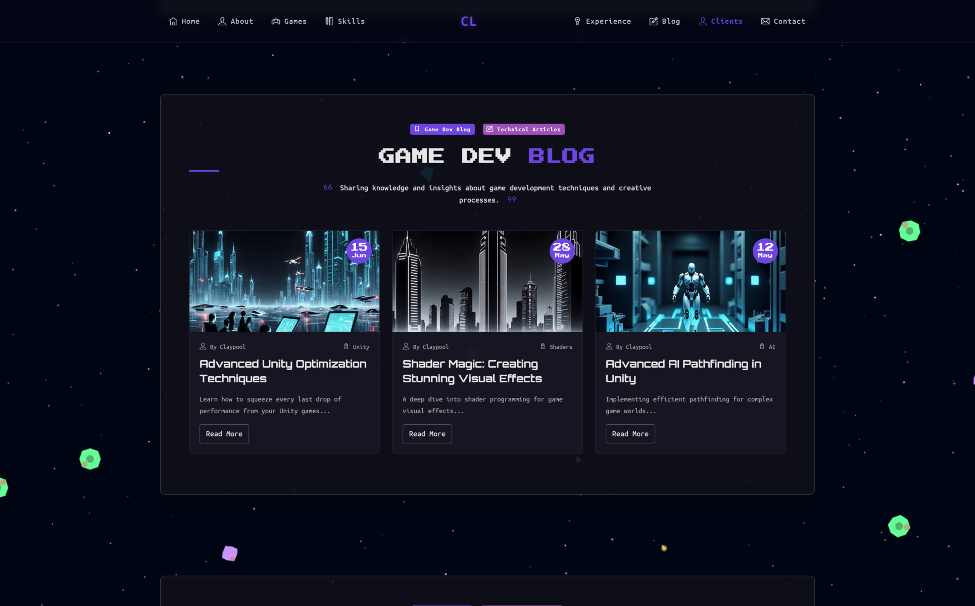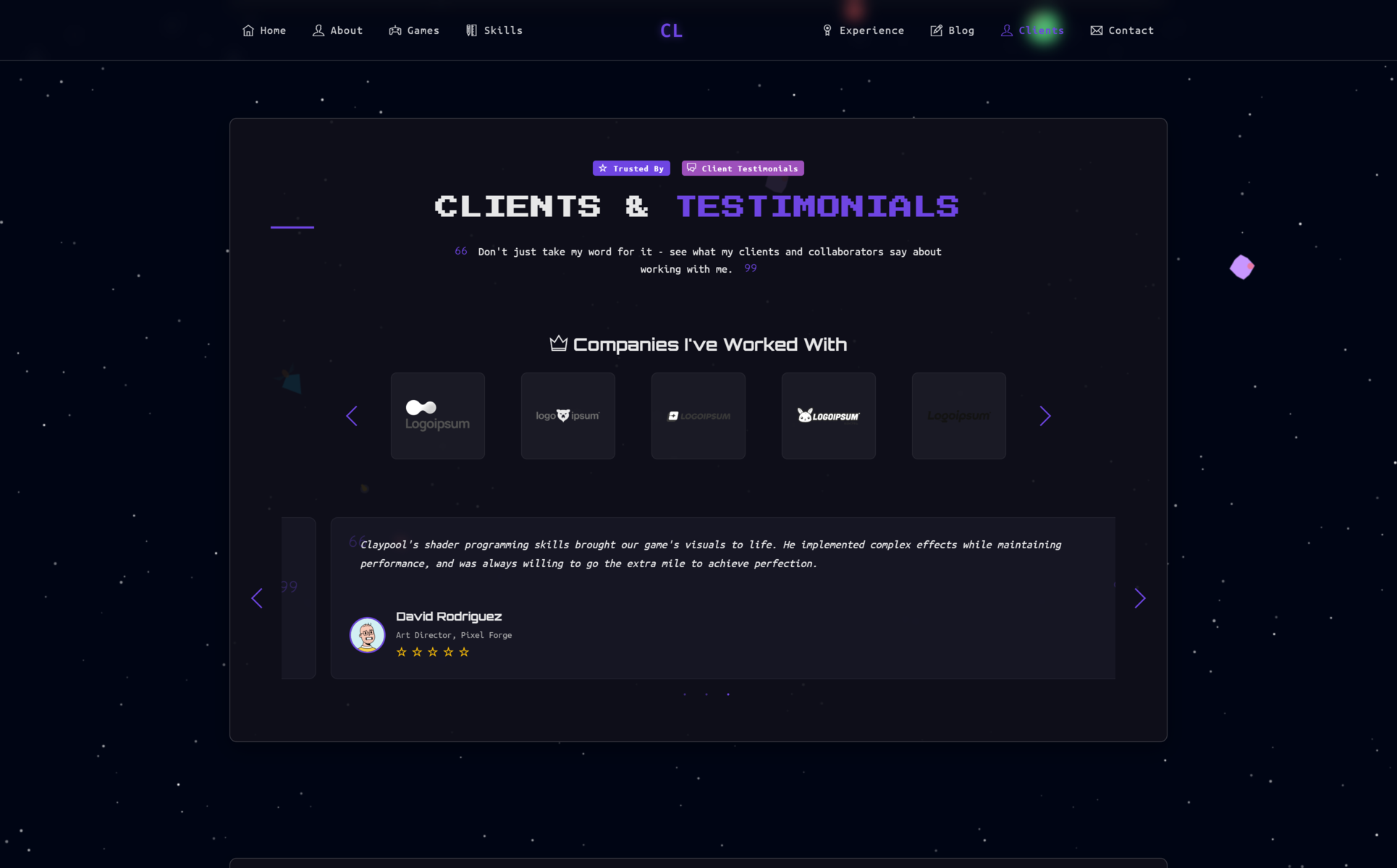 Claypool - Professional Game Developer Portfolio Template Landing Page Template