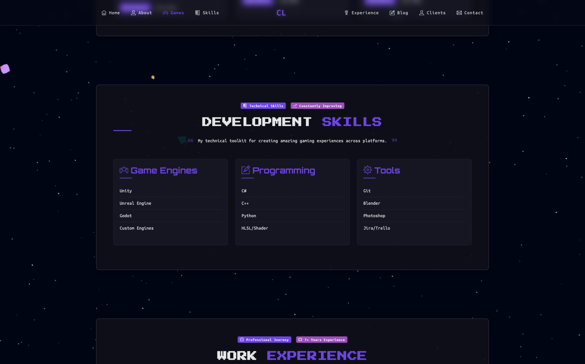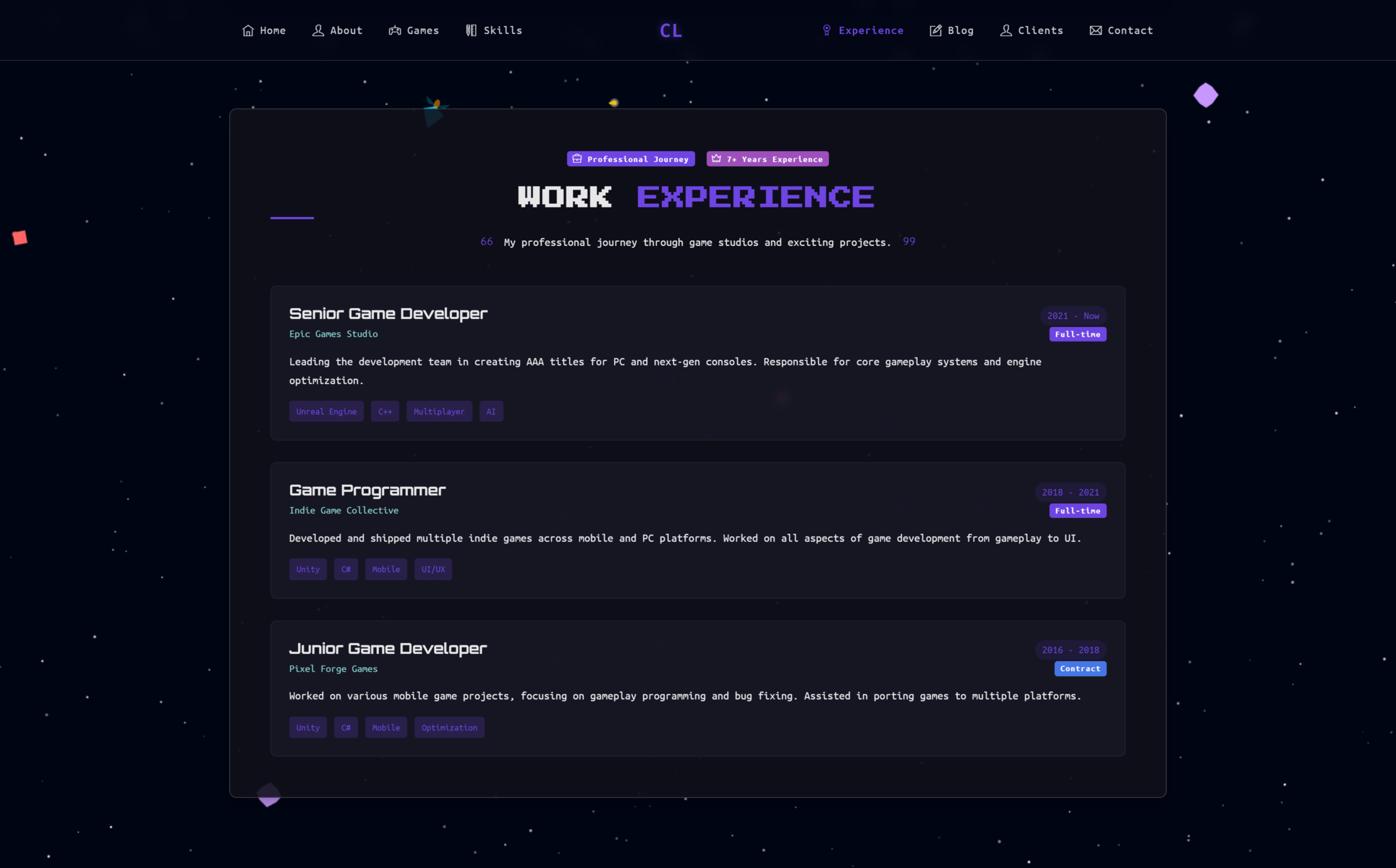 ✅ Game Developer Focused – Sections for games, skills, experience, blog, and more—tailored for game devs.
