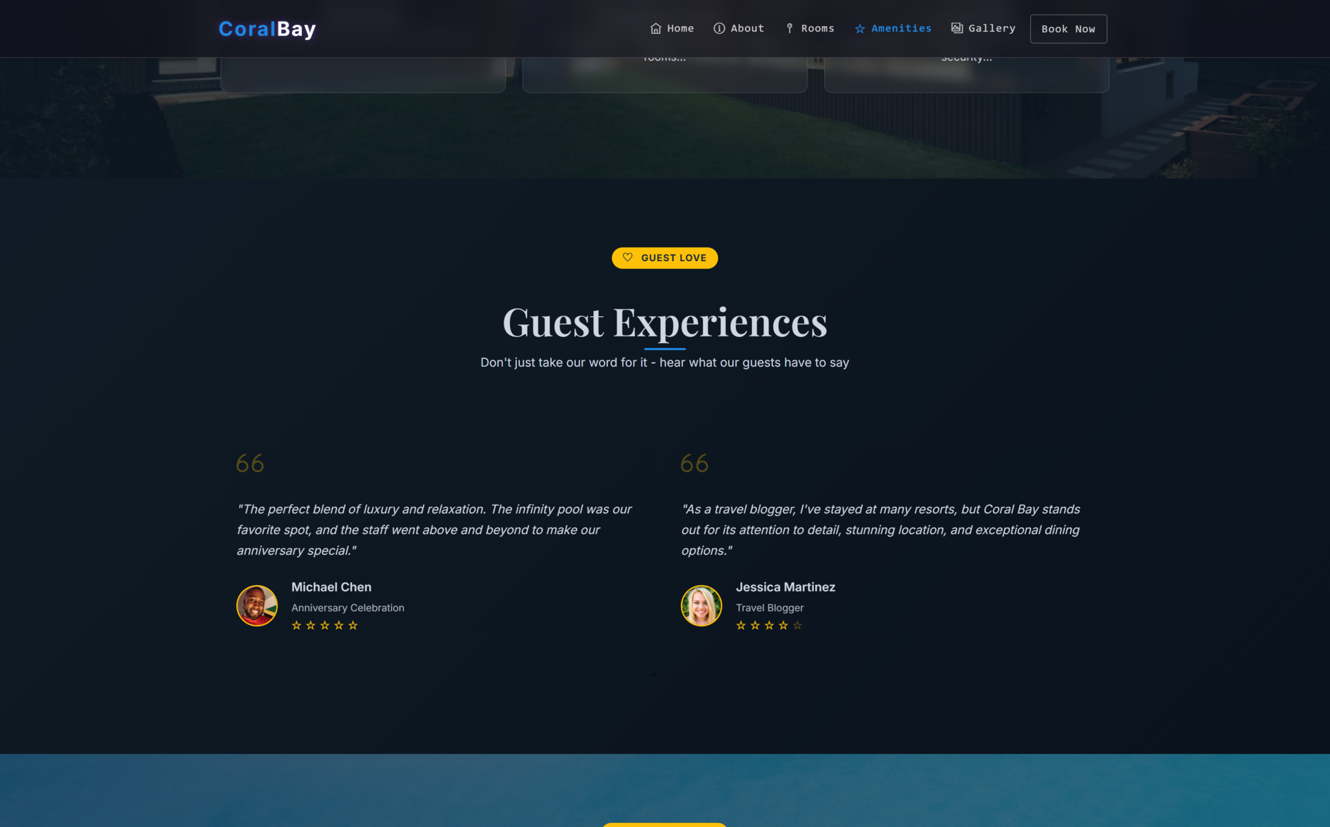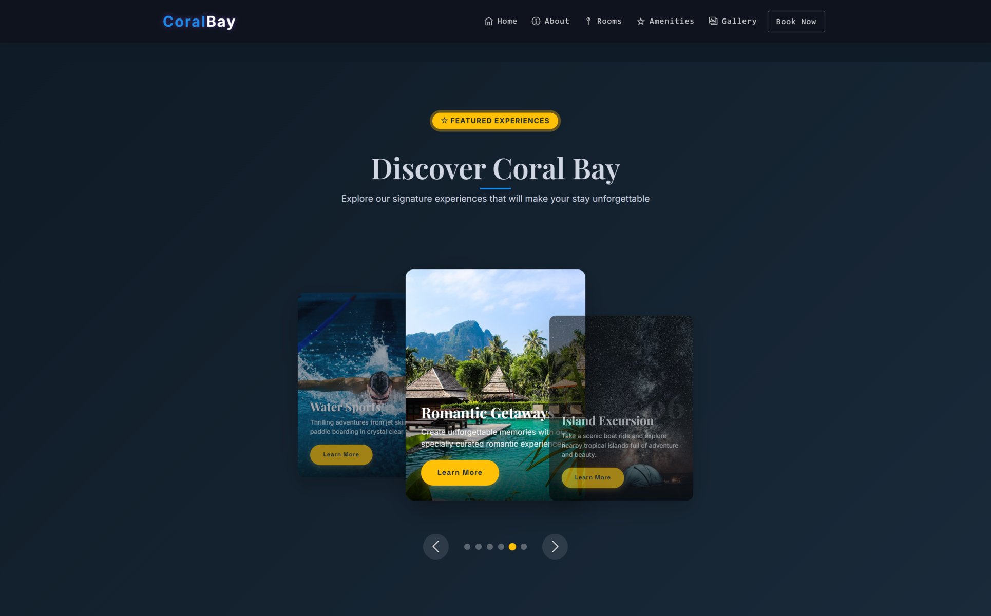 Coral Bay is a visually stunning HTML5 template designed exclusively for luxury beach resorts, 5-star hotels, and premium vacation rentals. This template stands out with its cutting-edge animated beach background created with p5.js, featuring dynamic wave animations that bring your oceanfront property to life. The template includes a mesmerizing 3D carousel to showcase resort experiences, a fully interactive booking system with date picker, and an elegant room gallery with Isotope filtering (rooms/beach/dining categories).