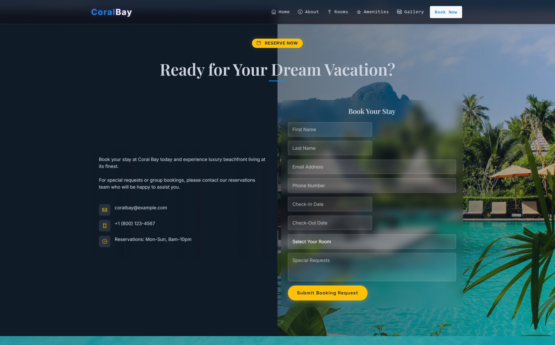 - Fully functional contact and booking forms with validation
