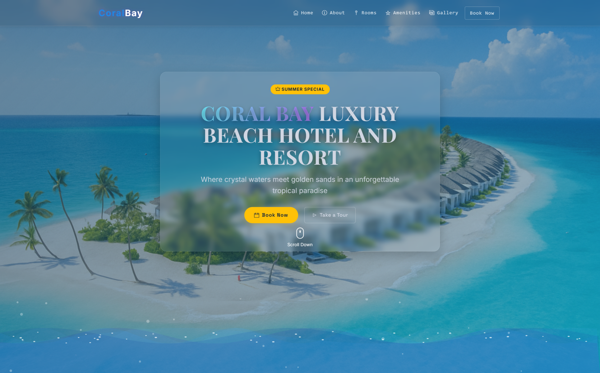 Ideal for: Luxury beach resorts, 5-star hotels, island retreats, premium villas, honeymoon destinations, and tropical vacation rentals looking to showcase their property with elegant animations and premium booking functionality.