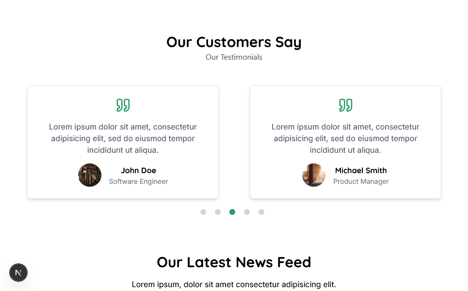 - Interactive Testimonials Slider: Showcase customer reviews with a sleek, auto-playing slider powered by `react-slick`, enhancing credibility and trust.